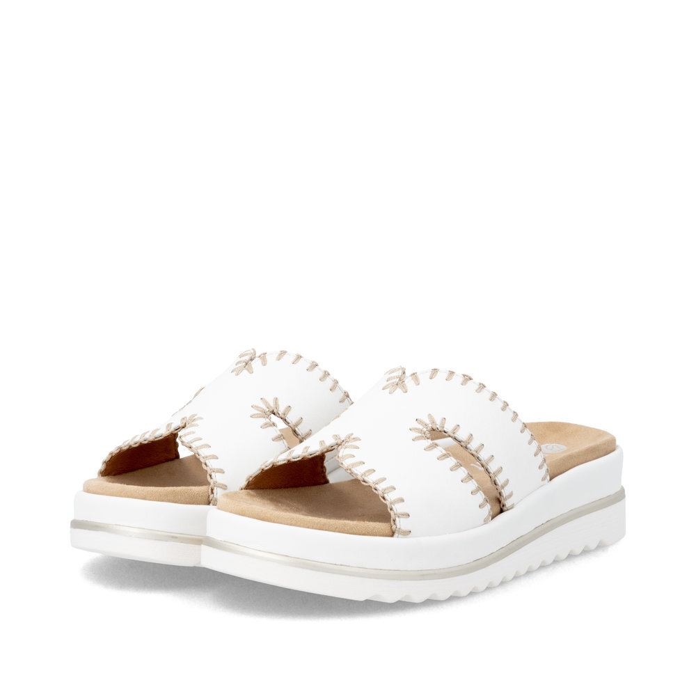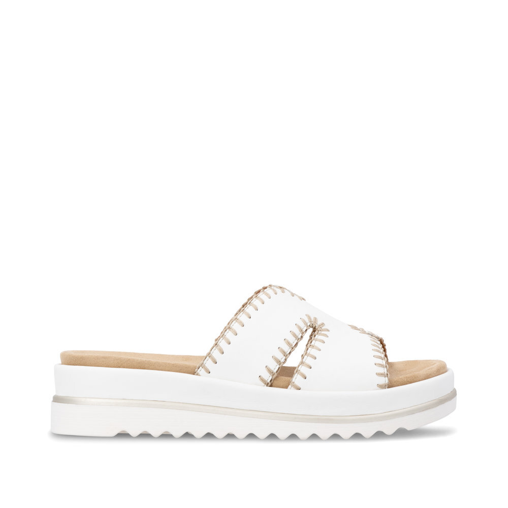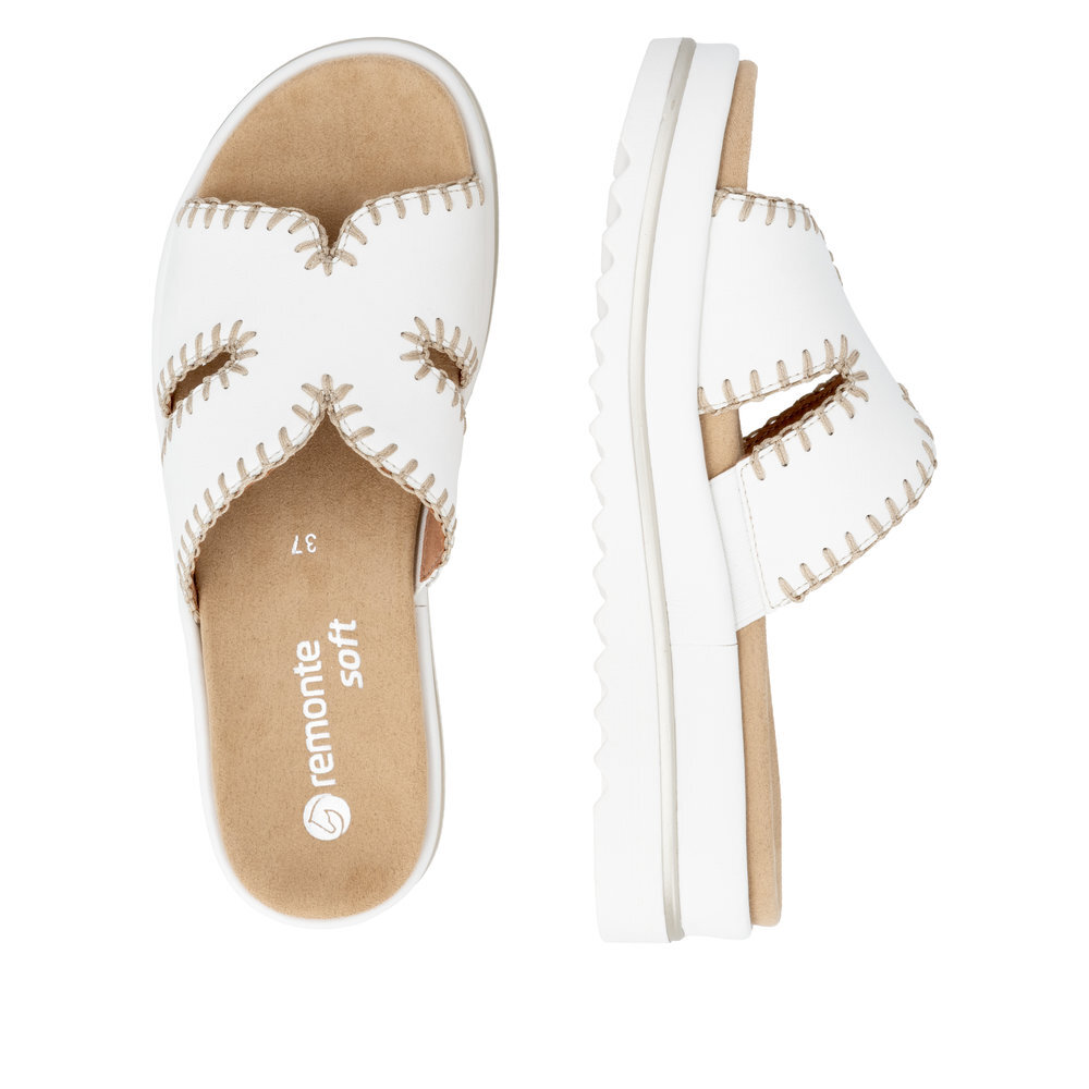 Dámske kožené šľapky z kolekcie značky Remonte - Rieker na klinovom podpätku. Obľúbený strih, sú skvelým doplnením každého elegantného ale aj ležérneho outfitu. Určite si ich zamilujete vďaka ich pohodlnosti a mäkkosti. Ergonomický tvar dodáva pocit absolútneho pohodlia. Po vyčerpávajúcom a náročnom dni sa budú Vaše nohy cítiť svieže a oddýchnuté a to najmä vďaka ľahkým materiálom a konštrukcii. Pružná platforma dokonale dopĺňa dizajn, postará sa o Vaše pohodlie na každom kroku. Kožené topánky sú zaručenou klasikou, zaručia Vám vysokú kvalitu a ide o pár, ktorý vám vydrží niekoľko sezón. Pre všetkých, ktorí sa chcú v topánkach cítiť pohodlne a štýlovo. Obuv REMONTE - jedná sa o vyššiu radu značky RIEKER, táto obuv sa vyznačuje vynikajúcou kombináciou vrchných materiálov. Topánky z rady REMONTE Vám zabezpečia maximálny komfort pri celodennom nosení.