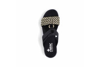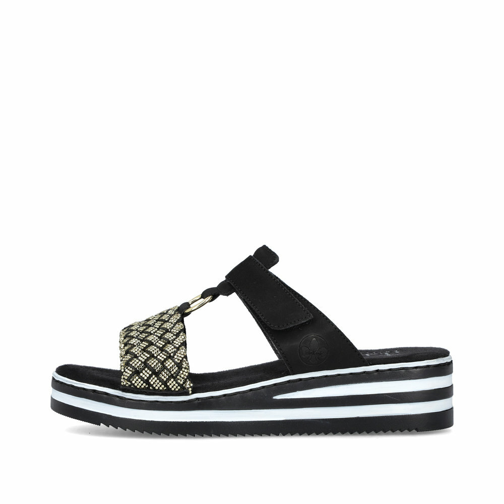 Dámske remienkové šľapky z kolekcie značky Rieker na klinovom podpätku, platforme. Komfortný model, ktorý počas letných dní zaiste využijete. S individuálne nastaviteľnými remienkami. Topánky Vám zabezpečia maximálny komfort pri celodennom nosení. Optimálna, pohodlná výška klinu. Pružná a robustná platforma dokonale dopĺňa dizajn, postará sa o Vaše pohodlie na každom kroku, tlmí nárazy a otrasy. Vďaka unikátnym vlastnostiam podošvy zažijete jedinečný pocit ľahkosti pri chôdzi. Ak denne trávite na nohách viac času tak značka Rieker je skutočne tou pravou voľbou pre Vás. Ide doslova o vychádzkovú obuv ktorá vydrží v plnej kvalite naozaj veľmi dlhý čas. Po vyčerpávajúcom a náročnom dni sa budú Vaše nohy cítiť svieže a oddýchnuté a to najmä vďaka ľahkým materiálom a konštrukcii.