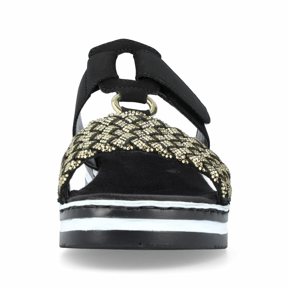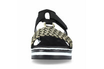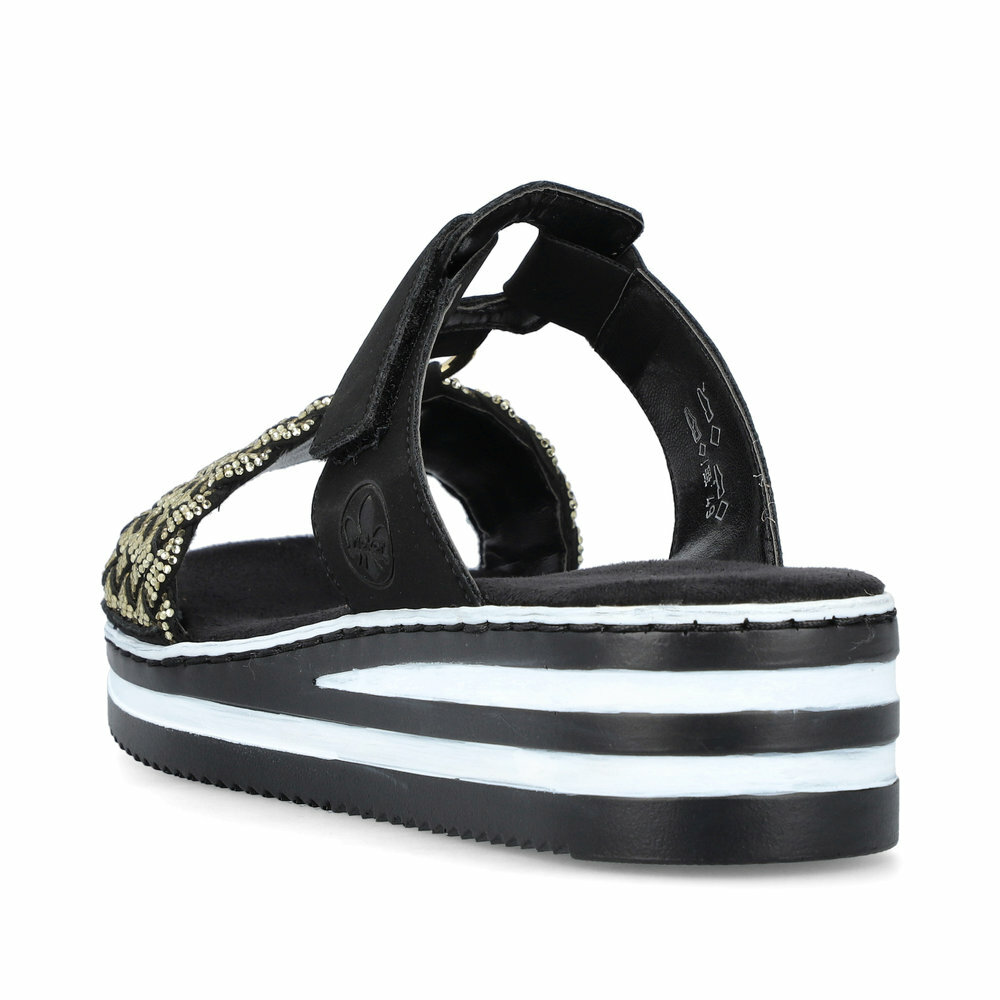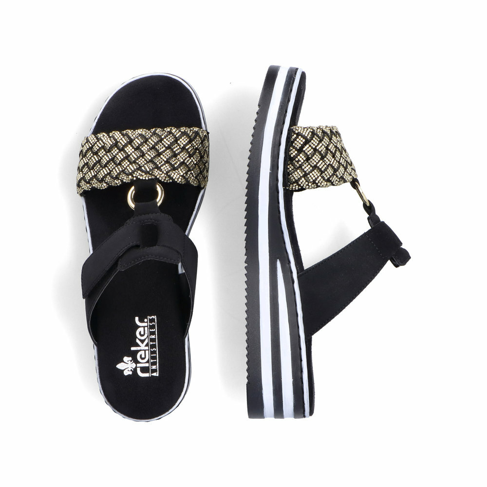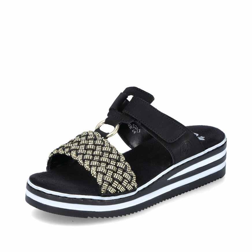 Dámske remienkové šľapky z kolekcie značky Rieker na klinovom podpätku, platforme. Komfortný model, ktorý počas letných dní zaiste využijete. S individuálne nastaviteľnými remienkami. Topánky Vám zabezpečia maximálny komfort pri celodennom nosení. Optimálna, pohodlná výška klinu. Pružná a robustná platforma dokonale dopĺňa dizajn, postará sa o Vaše pohodlie na každom kroku, tlmí nárazy a otrasy. Vďaka unikátnym vlastnostiam podošvy zažijete jedinečný pocit ľahkosti pri chôdzi. Ak denne trávite na nohách viac času tak značka Rieker je skutočne tou pravou voľbou pre Vás. Ide doslova o vychádzkovú obuv ktorá vydrží v plnej kvalite naozaj veľmi dlhý čas. Po vyčerpávajúcom a náročnom dni sa budú Vaše nohy cítiť svieže a oddýchnuté a to najmä vďaka ľahkým materiálom a konštrukcii.