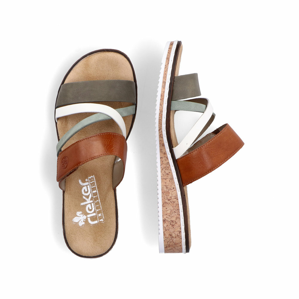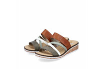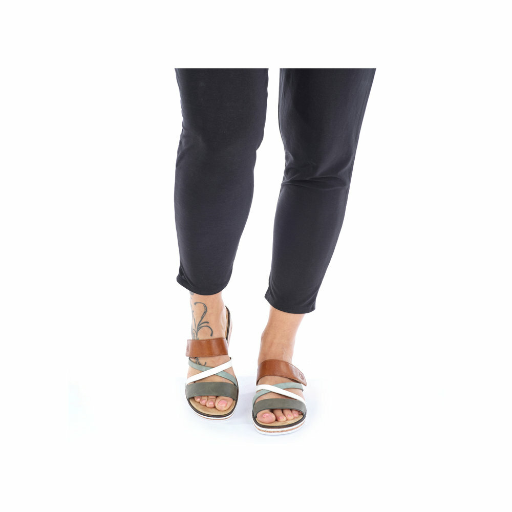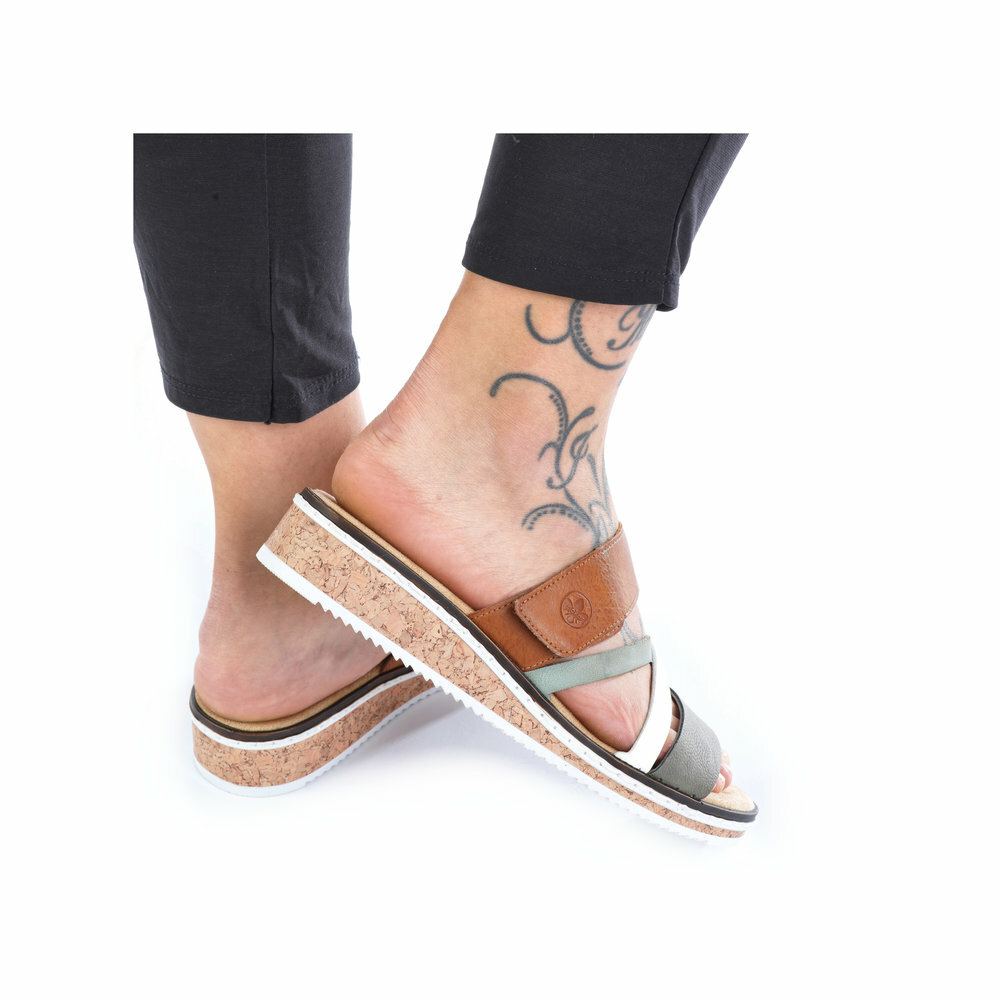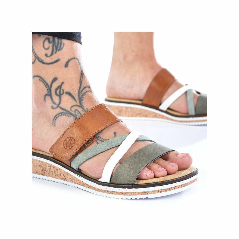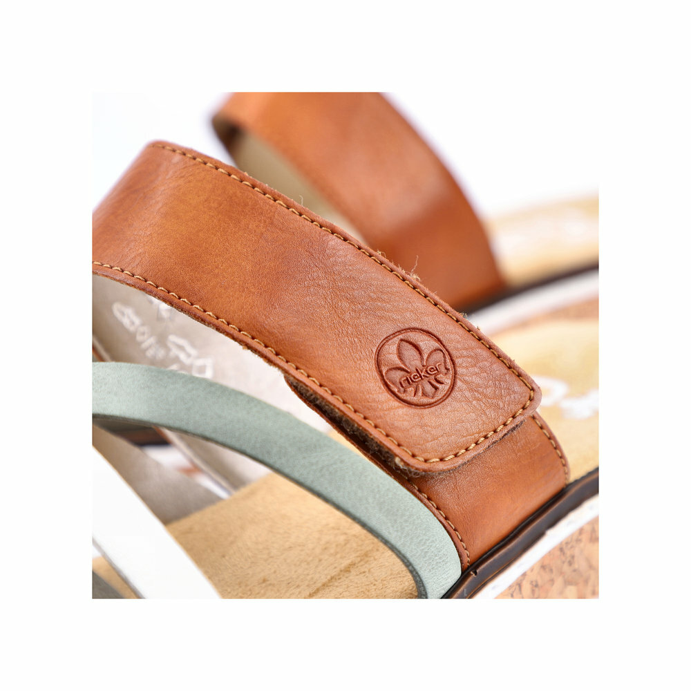 Dámske remienkové šľapky z kolekcie značky Rieker na klinovom podpätku, platforme. Komfortný model, ktorý počas letných dní zaiste využijete. Topánky Vám zabezpečia maximálny komfort pri celodennom nosení. Optimálna, pohodlná výška klinu. S individuálne nastaviteľným remienkom na suchý zips. Pružná a robustná podošva, platforma dokonale dopĺňa športový dizajn, postará sa o Vaše pohodlie na každom kroku, tlmí nárazy a otrasy. Vďaka unikátnym vlastnostiam podošvy zažijete jedinečný pocit ľahkosti pri chôdzi. Ak denne trávite na nohách viac času tak značka Rieker je skutočne tou pravou voľbou pre Vás. Ide doslova o vychádzkovú obuv ktorá vydrží v plnej kvalite naozaj veľmi dlhý čas. Po vyčerpávajúcom a náročnom dni sa budú Vaše nohy cítiť svieže a oddýchnuté a to najmä vďaka ľahkým materiálom a konštrukcii.