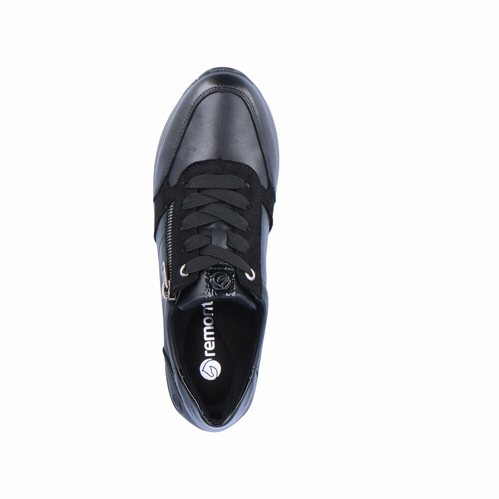 Dámske kožené tenisky z kolekcie Remonte by Rieker. Sú módne a na nohe vyzerajú absolútne originálne. Pružná a robustná podošva dokonale dopĺňa športový dizajn, postará sa o Vaše pohodlie na každom kroku, tlmí nárazy a otrasy. Bočné zapínanie na zips pre jednoduché obutie a šnurovaním pre jednoduché správne nastavenie potrebnej šírky. Vďaka pevnému šnurovaniu tento model topánok pevne priľne k nohe po celej dĺžke. Viazanie zároveň esteticky dotvára zvršok obuvi v klasickom štýle. Priestorný strih. Ergonomický tvar dodáva pocit absolútneho pohodlia. Po vyčerpávajúcom a náročnom dni sa budú Vaše nohy cítiť svieže a oddýchnuté a to najmä vďaka ľahkým materiálom a konštrukcii.