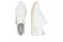 Dámske tenisky z kolekcie značky Remonte - Rieker. Pohodlne a štýlovo, tak sa budete cítiť v tomto modeli topánok. Príjemne mäkká stielka, ohybná podošva s optimálnou výškou klinu. Bočné zapínanie na zips pre jednoduché obutie a šnurovaním pre jednoduché správne nastavenie potrebnej šírky. Vďaka pevnému šnurovaniu tento model topánok pevne priľne k nohe po celej dĺžke. Viazanie zároveň esteticky dotvára zvršok obuvi v klasickom štýle. Pružná a robustná podošva dokonale dopĺňa športový dizajn, postará sa o Vaše pohodlie na každom kroku, tlmí nárazy a otrasy. Mäkká stielka, ktorá podporí príjemný došľap, nadväzuje na zabrúsenú pätnú časť. Vďaka jej vlastnostiam je táto obuv vyhľadávaná všetkými, ktorí musia počas dňa dlho stáť a chodiť. Po vyčerpávajúcom a náročnom dni sa budú Vaše nohy cítiť svieže a oddýchnuté a to najmä vďaka ľahkým materiálom.