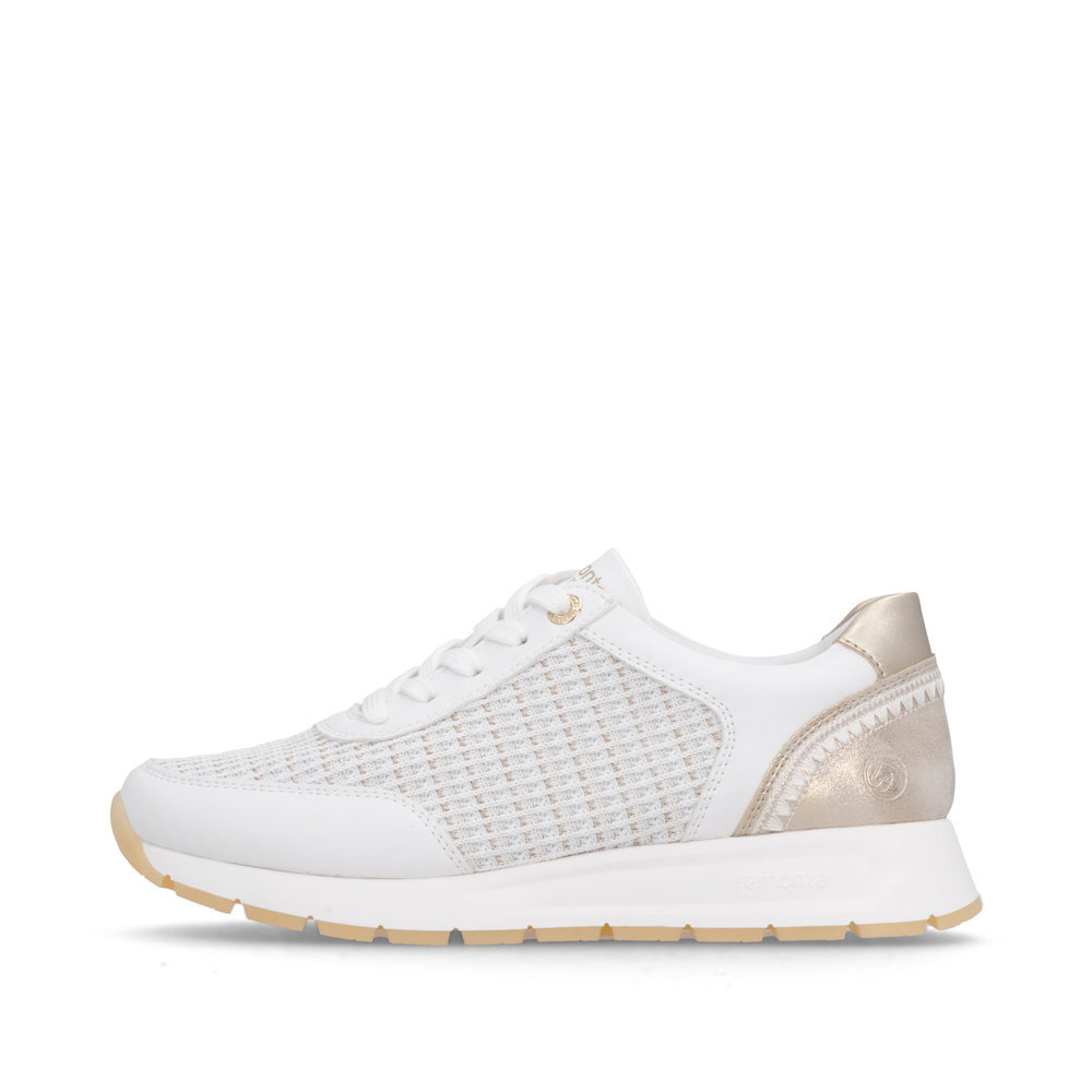 Dámske tenisky z kolekcie značky Remonte - Rieker. Pohodlne a štýlovo, tak sa budete cítiť v tomto modeli topánok. Príjemne mäkká stielka, ohybná podošva s optimálnou výškou klinu. Vďaka pevnému šnurovaniu tento model topánok pevne priľne k nohe po celej dĺžke. Viazanie zároveň esteticky dotvára zvršok obuvi v klasickom štýle. Pružná podošva dokonale dopĺňa dizajn, postará sa o Vaše pohodlie na každom kroku, tlmí nárazy a otrasy. Vďaka jej vlastnostiam je táto obuv vyhľadávaná všetkými, ktorí musia počas dňa dlho stáť a chodiť. Po vyčerpávajúcom a náročnom dni sa budú Vaše nohy cítiť svieže a oddýchnuté a to najmä vďaka ľahkým materiálom.