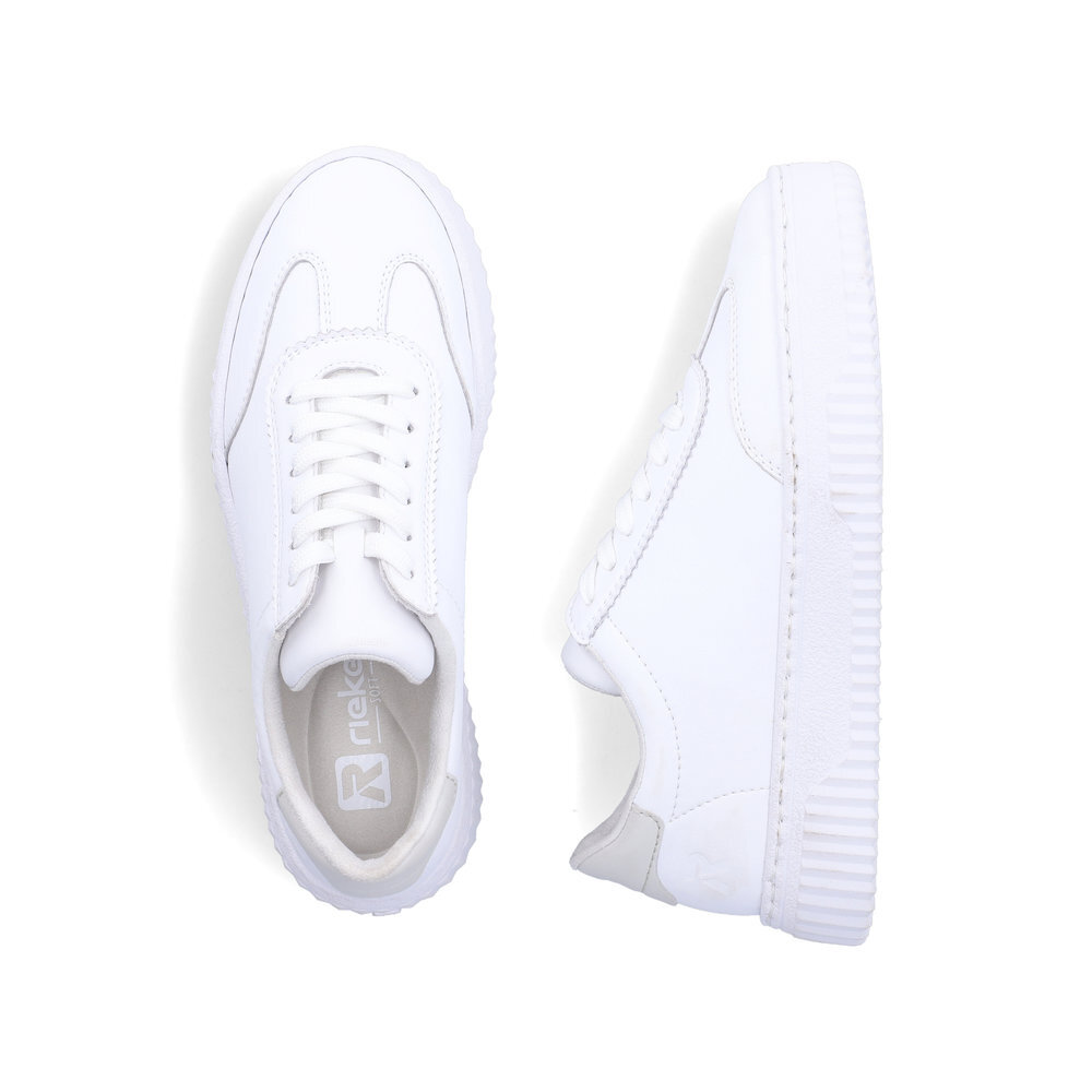 Dámske kožené tenisky z kolekcie značky Rieker. Sú módne a na nohe vyzerajú absolútne originálne. Vďaka pevnému šnurovaniu tento model topánok pevne priľne k nohe po celej dĺžke. Viazanie zároveň esteticky dotvára zvršok obuvi v klasickom štýle. Priestorný strih. Kožené topánky sú zaručenou klasikou, zaručia Vám vysokú kvalitu a ide o pár, ktorý vám vydrží niekoľko sezón. Pružná podošva dokonale dopĺňa dizajn, postará sa o Vaše pohodlie na každom kroku, tlmí nárazy a otrasy. Vďaka unikátnym vlastnostiam podošvy zažijete jedinečný pocit ľahkosti pri chôdzi. Ak denne trávite na nohách viac času tak značka Rieker je skutočne tou pravou voľbou pre Vás. Ide doslova o vychádzkovú obuv ktorá vydrží v plnej kvalite naozaj veľmi dlhý čas. Po vyčerpávajúcom a náročnom dni sa budú Vaše nohy cítiť svieže a oddýchnuté a to najmä vďaka ľahkým materiálom a konštrukcii.