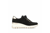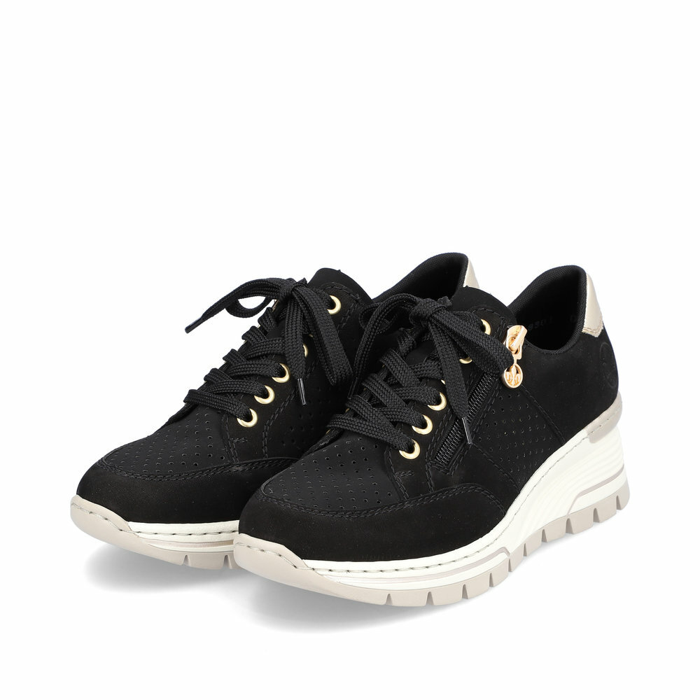 Dámske športovo - vychádzkové topánky, tenisky z kolekcie značky Rieker. Originálne, mimoriadne funkčné. Pre ľahké obutie je zapracovaný funkčný zips a šnúrky na šnurovanie. Vďaka pevnému šnurovaniu tento model topánok pevne priľne k nohe po celej dĺžke. Viazanie zároveň esteticky dotvára zvršok obuvi v klasickom štýle. Sú skvelým doplnením ležérneho outfitu. Pre všetkých, ktorí sa chcú v topánkach cítiť pohodlne a štýlovo. Pružná a robustná podošva dokonale dopĺňa športový dizajn, postará sa o Vaše pohodlie na každom kroku, tlmí nárazy a otrasy. Vďaka unikátnym vlastnostiam podošvy zažijete jedinečný pocit ľahkosti pri chôdzi. Ak denne trávite na nohách viac času tak značka Rieker je skutočne tou pravou voľbou pre Vás. Ide doslova o vychádzkovú obuv ktorá vydrží v plnej kvalite naozaj veľmi dlhý čas.