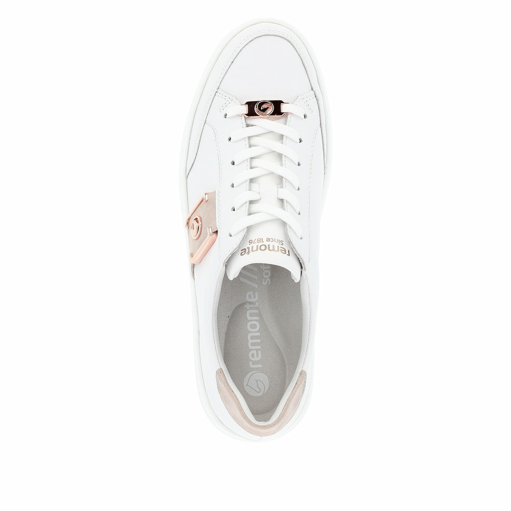 Dámske kožené sneakersy, tenisky z kolekcie Remonte - Rieker. Pohodlne a štýlovo, tak sa budete cítiť v tomto modeli topánok. Príjemne mäkká stielka, ohybná podošva s optimálnou výškou klinu. Vďaka pevnému šnurovaniu tento model topánok pevne priľne k nohe po celej dĺžke. Viazanie zároveň esteticky dotvára zvršok obuvi v klasickom štýle. Pružná a robustná podošva dokonale dopĺňa športový dizajn, postará sa o Vaše pohodlie na každom kroku, tlmí nárazy a otrasy. Mäkká stielka, ktorá podporí príjemný došľap, nadväzuje na zabrúsenú pätnú časť. Vďaka jej vlastnostiam je táto obuv vyhľadávaná všetkými, ktorí musia počas dňa dlho stáť a chodiť. Po vyčerpávajúcom a náročnom dni sa budú Vaše nohy cítiť svieže a oddýchnuté a to najmä vďaka ľahkým materiálom. Ak máte radi praktickú a kvalitnú obuv, tento model je pre vás ako stvorený.