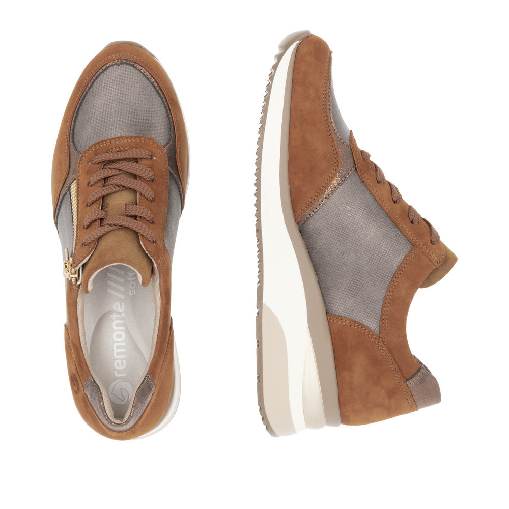 Dámske kožené tenisky z kolekcie značky Remonte - Rieker. Pohodlne a štýlovo, tak sa budete cítiť v tomto modeli topánok. Príjemne mäkká stielka, ohybná podošva s optimálnou výškou klinu. Bočné zapínanie na zips pre jednoduché obutie a šnurovaním pre jednoduché správne nastavenie potrebnej šírky. Vďaka pevnému šnurovaniu tento model topánok pevne priľne k nohe po celej dĺžke. Viazanie zároveň esteticky dotvára zvršok obuvi v klasickom štýle. Pružná a robustná podošva dokonale dopĺňa športový dizajn, postará sa o Vaše pohodlie na každom kroku, tlmí nárazy a otrasy. Mäkká stielka, ktorá podporí príjemný došľap, nadväzuje na zabrúsenú pätnú časť. Vďaka jej vlastnostiam je táto obuv vyhľadávaná všetkými, ktorí musia počas dňa dlho stáť a chodiť. Po vyčerpávajúcom a náročnom dni sa budú Vaše nohy cítiť svieže a oddýchnuté a to najmä vďaka ľahkým materiálom.