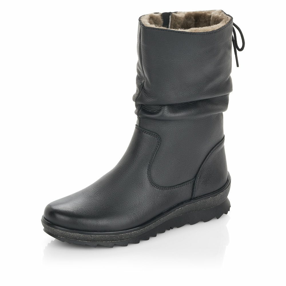 Dámske kožené, stredne vysoké čižmičky z kolekcie Remonte - Rieker na nízkom podpätku. Sú módne a na nohe vyzerajú absolútne originálne. Optimálna, pohodlná výška podpätku. Priestorný strih. Bočné zapínanie na zips pre jednoduché obutie. Topánky sú zateplené kožušinkou a príjemne zahrejú pri chladnejšom počasí. Pre všetkých, ktorí sa chcú v topánkach cítiť pohodlne a štýlovo. Pružná podošva dokonale dopĺňa športový dizajn, postará sa o Vaše pohodlie na každom kroku, tlmí nárazy a otrasy. Vďaka unikátnym vlastnostiam podošvy zažijete jedinečný pocit ľahkosti pri chôdzi.