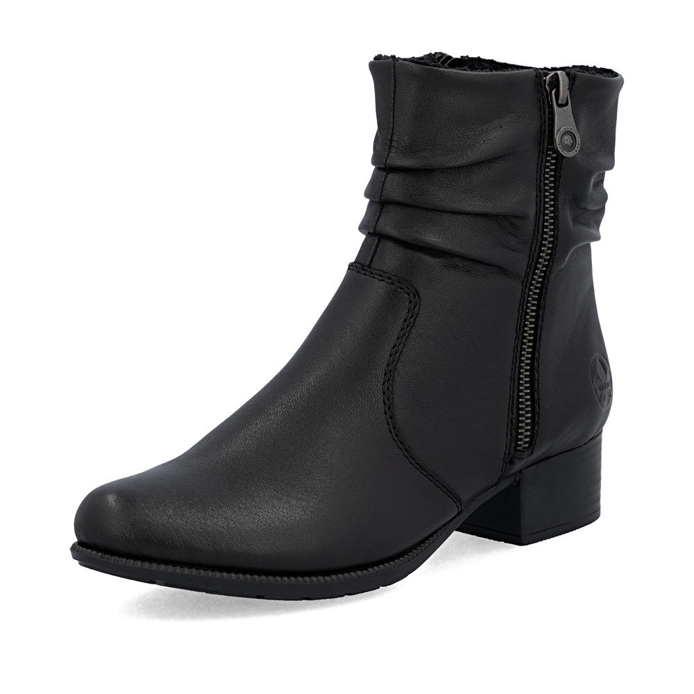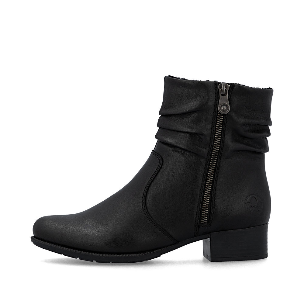 Dámske kožené čižmičky z kolekcie značky Rieker na nízkom podpätku. Sú skvelým doplnením každého elegantného ale aj ležérneho outfitu. Priestorný strih, mäkký a hrejivý materiál vás zahalí do pohodlia v mrazivých dňoch. Pre všetkých, ktorí sa chcú v topánkach cítiť pohodlne a štýlovo. Pre ľahké obutie je zapracovaný funkčný zips. Kožené topánky sú zaručenou klasikou, zaručia Vám vysokú kvalitu a ide o pár, ktorý vám vydrží niekoľko sezón. Pružná podošva dokonale dopĺňa dizajn, postará sa o Vaše pohodlie na každom kroku, tlmí nárazy a otrasy. Vďaka unikátnym vlastnostiam podošvy zažijete jedinečný pocit ľahkosti pri chôdzi. Ak denne trávite na nohách viac času tak značka Rieker je skutočne tou pravou voľbou pre Vás. Ide doslova o vychádzkovú obuv ktorá vydrží v plnej kvalite naozaj veľmi dlhý čas.