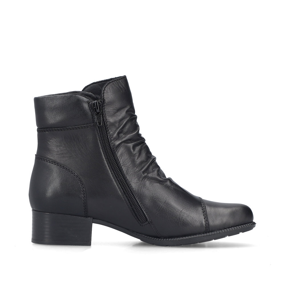 Dámske kožené čižmičky z kolekcie značky Rieker na nízkom podpätku. Sú skvelým doplnením každého elegantného ale aj ležérneho outfitu. Priestorný strih, mäkký a hrejivý materiál vás zahalí do pohodlia v mrazivých dňoch. Pre všetkých, ktorí sa chcú v topánkach cítiť pohodlne a štýlovo. Pre ľahké obutie je zapracovaný funkčný zips. Kožené topánky sú zaručenou klasikou, zaručia Vám vysokú kvalitu a ide o pár, ktorý vám vydrží niekoľko sezón. Pružná podošva dokonale dopĺňa dizajn, postará sa o Vaše pohodlie na každom kroku, tlmí nárazy a otrasy. Vďaka unikátnym vlastnostiam podošvy zažijete jedinečný pocit ľahkosti pri chôdzi. Ak denne trávite na nohách viac času tak značka Rieker je skutočne tou pravou voľbou pre Vás. Ide doslova o vychádzkovú obuv ktorá vydrží v plnej kvalite naozaj veľmi dlhý čas.