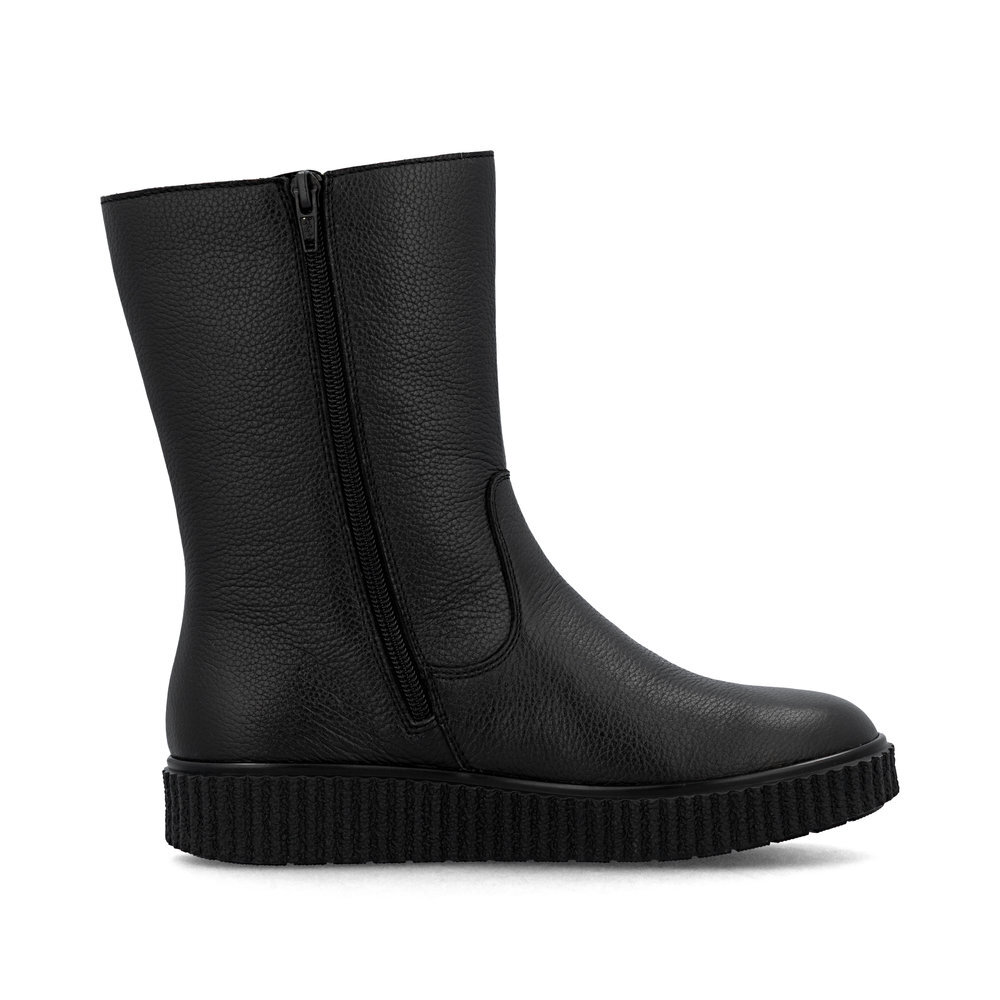 Dámske zateplené kožené čižmičky z kolekcie Rieker. Kožené topánky sú zaručenou klasikou, zaručia Vám vysokú kvalitu a ide o pár, ktorý vám vydrží niekoľko sezón. Určite si ich zamilujete vďaka ich pohodlnosti a mäkkosti. Priestorný strih, mäkký a hrejivý materiál vás zahalí do pohodlia v mrazivých dňoch. Pre ľahké obutie je zapracovaný funkčný zips. Pružná a robustná podošva dokonale dopĺňa športový dizajn, postará sa o Vaše pohodlie na každom kroku, tlmí nárazy a otrasy. Je to ideálny model, ktorý oceníte pri ceste do práce, ale aj pri bežných pochôdzkach. Ak denne trávite na nohách viac času tak značka Rieker je skutočne tou pravou voľbou pre Vás. Ide doslova o vychádzkovú obuv ktorá vydrží v plnej kvalite naozaj veľmi dlhý čas.