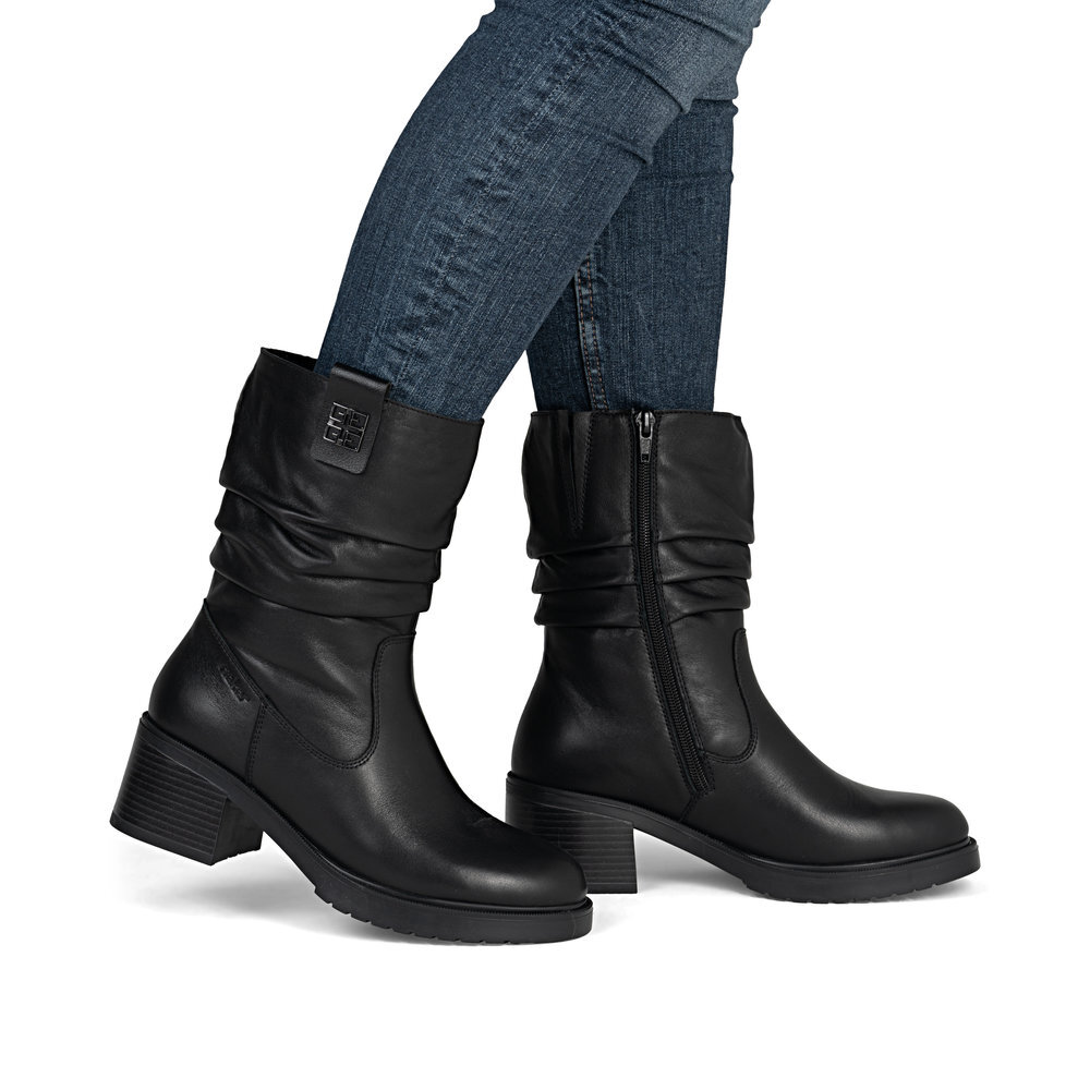 Dámske kožené čižmičky z kolekcie značky Rieker na vysokom podpätku. Obľúbený strih, sú skvelým doplnením každého elegantného ale aj ležérneho outfitu. Priestorný strih, mäkký a hrejivý materiál vás zahalí do pohodlia v mrazivých dňoch. Pre všetkých, ktorí sa chcú v topánkach cítiť pohodlne a štýlovo. Určite si ich zamilujete vďaka ich pohodlnosti a mäkkosti. Pre ľahké obutie je zapracovaný funkčný zips. Kožené topánky sú zaručenou klasikou, zaručia Vám vysokú kvalitu a ide o pár, ktorý vám vydrží niekoľko sezón. Pružná podošva dokonale dopĺňa dizajn, postará sa o Vaše pohodlie na každom kroku, tlmí nárazy a otrasy. Vďaka unikátnym vlastnostiam podošvy zažijete jedinečný pocit ľahkosti pri chôdzi. Ak denne trávite na nohách viac času tak značka Rieker je skutočne tou pravou voľbou pre Vás. Ide doslova o vychádzkovú obuv ktorá vydrží v plnej kvalite naozaj veľmi dlhý čas.