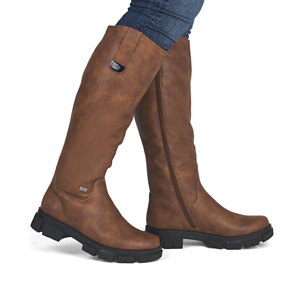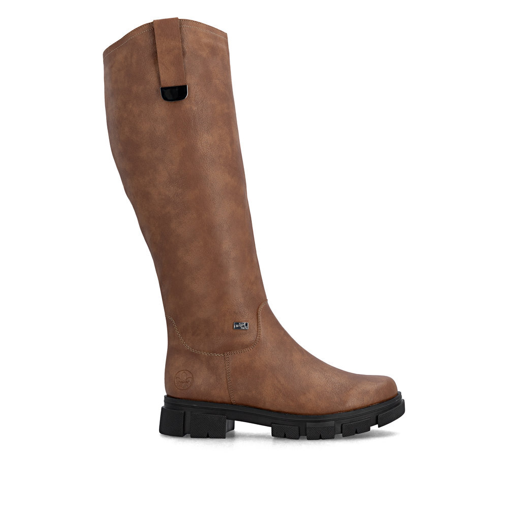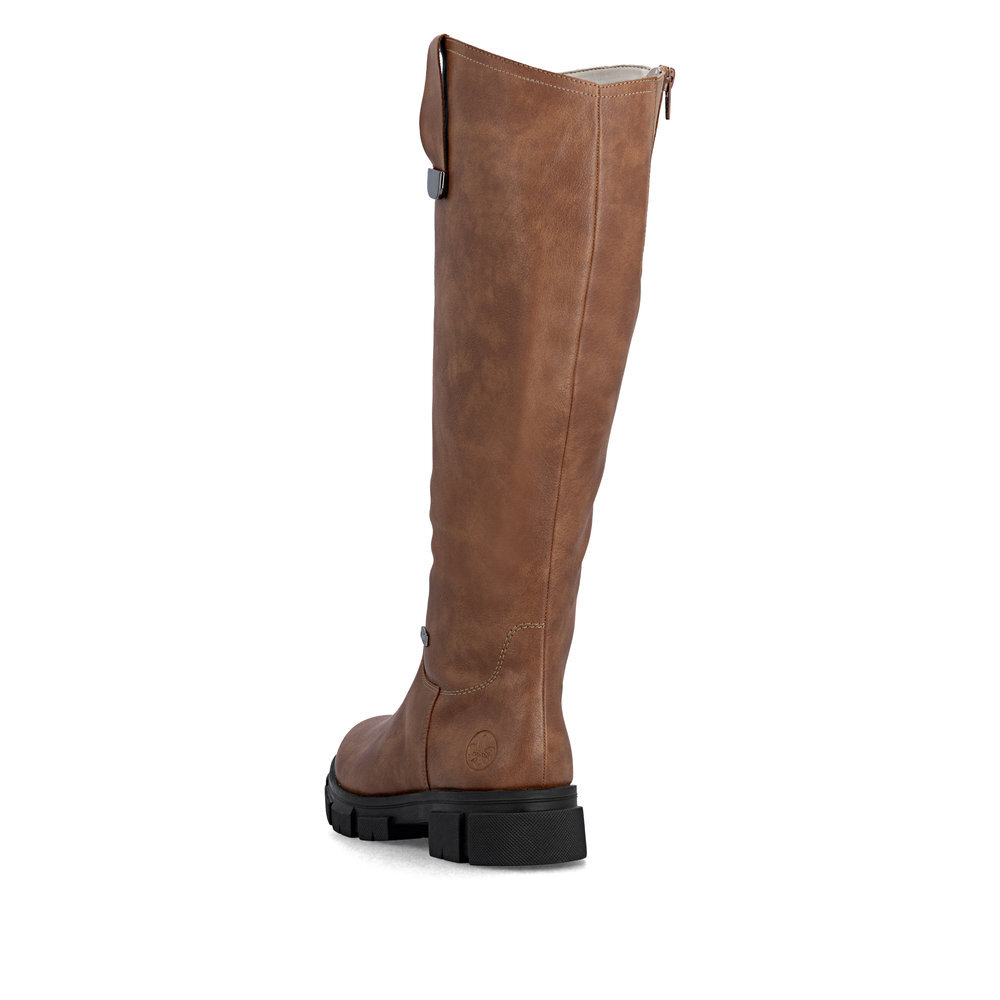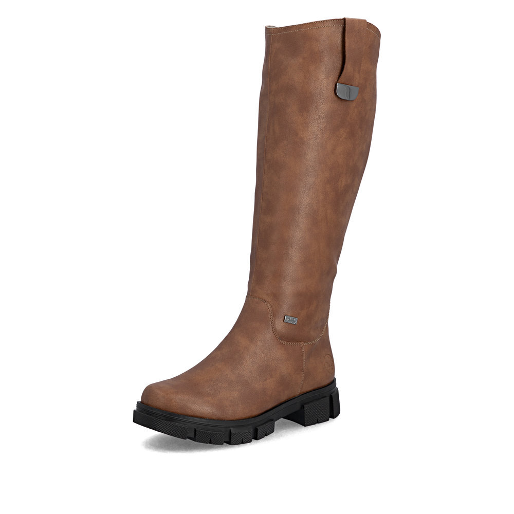 Dámske vysoké čižmy z kolekcie značky Rieker na nízkom podpätku. Obľúbený strih, sú skvelým doplnením každého elegantného ale aj ležérneho outfitu. Priestorný strih, mäkký a hrejivý materiál vás zahalí do pohodlia v mrazivých dňoch. Pre všetkých, ktorí sa chcú v topánkach cítiť pohodlne a štýlovo. Pre ľahké obutie je zapracovaný funkčný zips. Pružná podošva dokonale dopĺňa dizajn, postará sa o Vaše pohodlie na každom kroku, tlmí nárazy a otrasy. Vďaka unikátnym vlastnostiam podošvy zažijete jedinečný pocit ľahkosti pri chôdzi. Ak denne trávite na nohách viac času tak značka Rieker je skutočne tou pravou voľbou pre Vás. Ide doslova o vychádzkovú obuv ktorá vydrží v plnej kvalite naozaj veľmi dlhý čas.