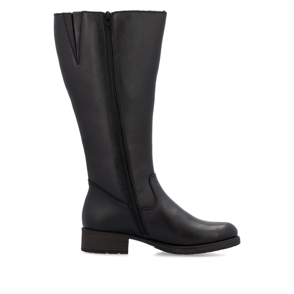 Dámske kožené vysoké čižmy z kolekcie značky Rieker na nízkom podpätku. Obľúbený strih, sú skvelým doplnením každého elegantného ale aj ležérneho outfitu. Priestorný strih, mäkký a hrejivý materiál vás zahalí do pohodlia v mrazivých dňoch. Pre všetkých, ktorí sa chcú v topánkach cítiť pohodlne a štýlovo. Určite si ich zamilujete vďaka ich pohodlnosti a mäkkosti. Pre ľahké obutie je zapracovaný funkčný zips. Kožené topánky sú zaručenou klasikou, zaručia Vám vysokú kvalitu a ide o pár, ktorý vám vydrží niekoľko sezón. Pružná a robustná podošva dokonale dopĺňa dizajn, postará sa o Vaše pohodlie na každom kroku, tlmí nárazy a otrasy. Vďaka unikátnym vlastnostiam podošvy zažijete jedinečný pocit ľahkosti pri chôdzi. Ak denne trávite na nohách viac času tak značka Rieker je skutočne tou pravou voľbou pre Vás. Ide doslova o vychádzkovú obuv ktorá vydrží v plnej kvalite naozaj veľmi dlhý čas.