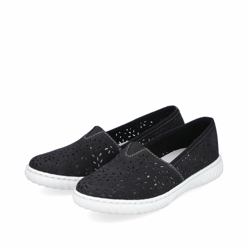 Dámske balerínky z kolekcie značky Rieker. Zvršok je z priedušného materiálu, ktorý zaručuje pohodlie a komfort počas letných horúcich dní. Pre všetkých, ktorí sa chcú v topánkach cítiť pohodlne a štýlovo. Pružná podošva dokonale dopĺňa dizajn, postará sa o Vaše pohodlie na každom kroku, tlmí nárazy a otrasy. Vďaka unikátnym vlastnostiam podošvy zažijete jedinečný pocit ľahkosti pri chôdzi. Ak denne trávite na nohách viac času tak značka Rieker je skutočne tou pravou voľbou pre Vás. Ide doslova o vychádzkovú obuv ktorá vydrží v plnej kvalite naozaj veľmi dlhý čas. Po vyčerpávajúcom a náročnom dni sa budú Vaše nohy cítiť svieže a oddýchnuté a to najmä vďaka ľahkým materiálom a konštrukcii.