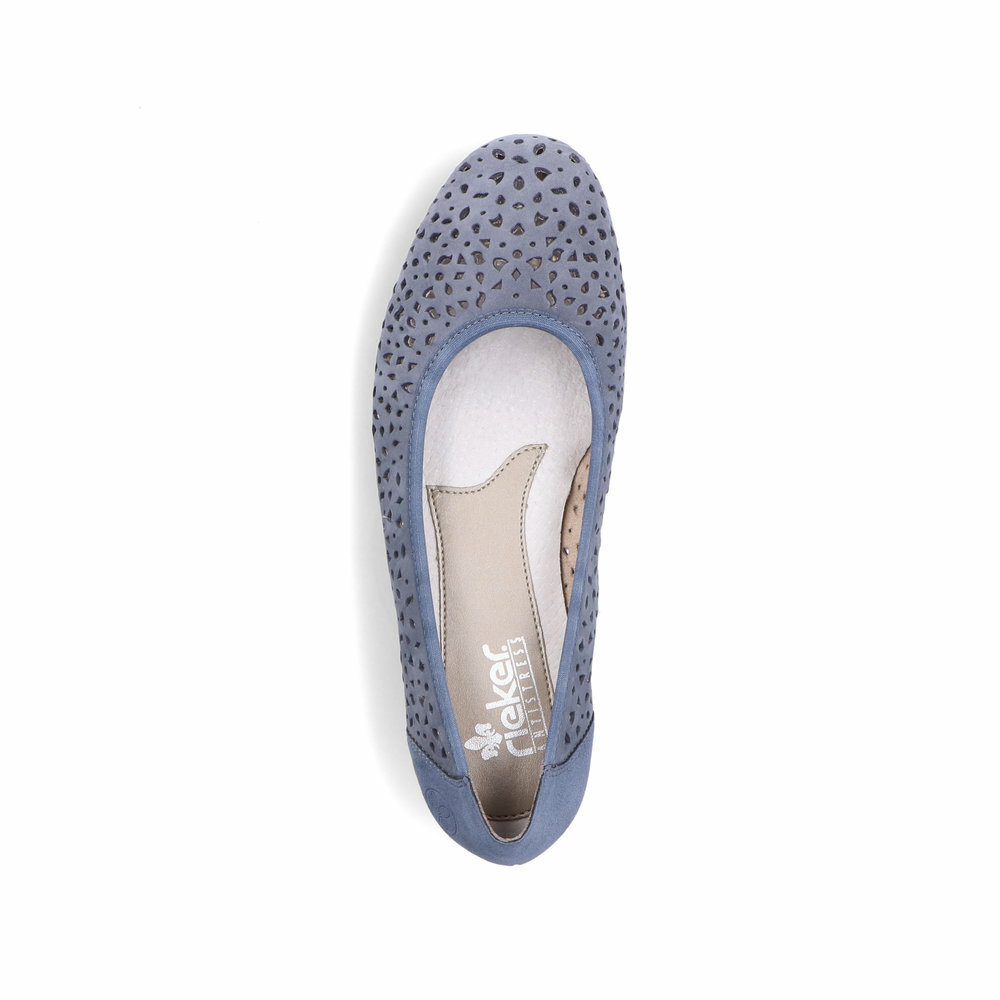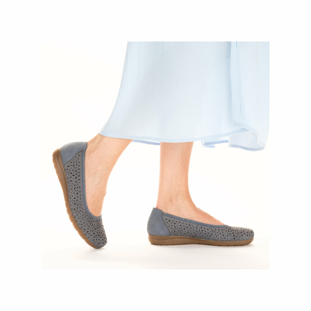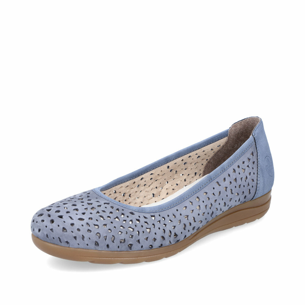 Tieto originálne dámske kožené balerínky z kolekcie značky Rieker dodajú iskru každému Vašemu outfitu. Zvršok je priedušný pre pohodlie aj v teplejších dňoch. Tento model oceníte pri ceste do práce, ale aj pri bežných pochôdzkach. Topánky Vám zabezpečia maximálny komfort pri celodennom nosení. Pre všetkých, ktorí sa chcú v topánkach cítiť pohodlne a štýlovo. Perforovanie - dierkovanie v hornej časti zvršku dávajú topánkam svoj osobitý a vzdušný vzhľad. Ak denne trávite na nohách viac času tak značka Rieker je skutočne tou pravou voľbou pre Vás. Ide doslova o vychádzkovú obuv ktorá vydrží v plnej kvalite naozaj veľmi dlhý čas. Po vyčerpávajúcom a náročnom dni sa budú Vaše nohy cítiť svieže a oddýchnuté a to najmä vďaka ľahkým materiálom a konštrukcii.