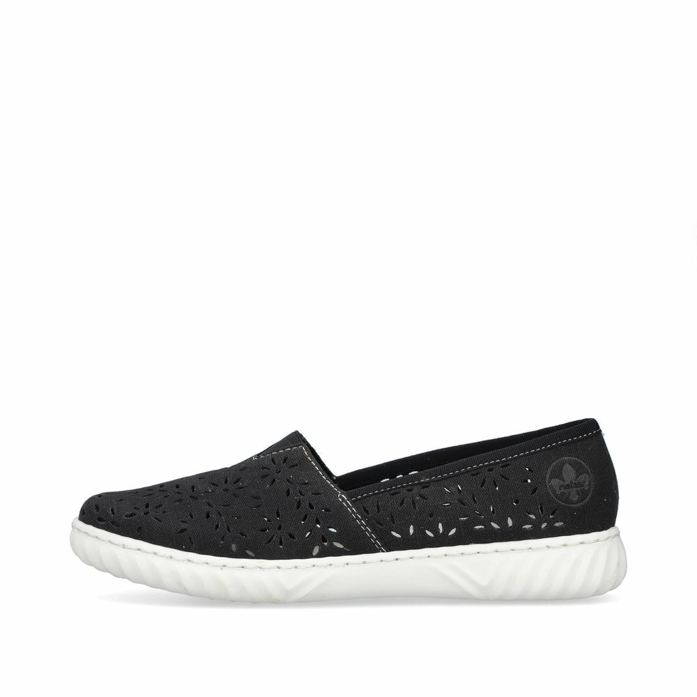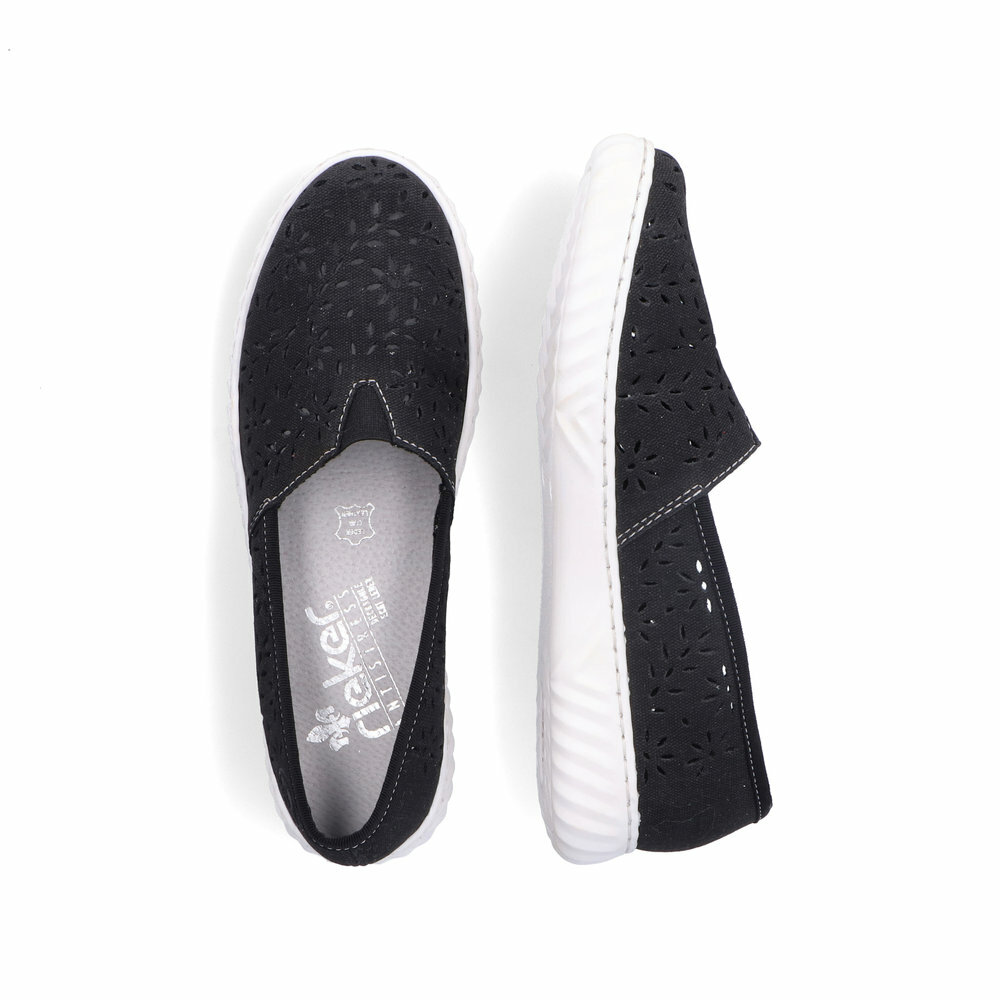 Dámske balerínky z kolekcie značky Rieker. Zvršok je z priedušného materiálu, ktorý zaručuje pohodlie a komfort počas letných horúcich dní. Pre všetkých, ktorí sa chcú v topánkach cítiť pohodlne a štýlovo. Pružná podošva dokonale dopĺňa dizajn, postará sa o Vaše pohodlie na každom kroku, tlmí nárazy a otrasy. Vďaka unikátnym vlastnostiam podošvy zažijete jedinečný pocit ľahkosti pri chôdzi. Ak denne trávite na nohách viac času tak značka Rieker je skutočne tou pravou voľbou pre Vás. Ide doslova o vychádzkovú obuv ktorá vydrží v plnej kvalite naozaj veľmi dlhý čas. Po vyčerpávajúcom a náročnom dni sa budú Vaše nohy cítiť svieže a oddýchnuté a to najmä vďaka ľahkým materiálom a konštrukcii.