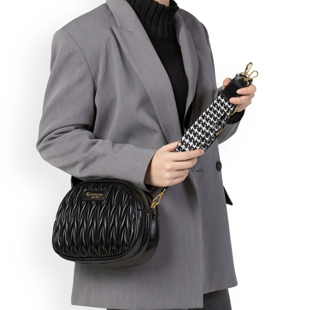Dámska crossbody kabelka z kolekcie značky Remonte - Rieker. Jedinečný dizajn, ktorý dotvára čierny zvršok ozdobený efektným riasením a štýlovou nášivkou s logom značky. Vnútorný priestor je prakticky rozdelený do troch samostatných častí, každá so zapínaním na zips, pričom dve z nich sú doplnené o menšie kapsičky na drobnosti. Zadná strana ponúka ďalšie vrecko na zips, ideálne pre rýchly prístup k nevyhnutnostiam. Kabelka prichádza s dvoma odopínateľnými a dĺžkovo nastaviteľnými popruhmi – klasickým čiernym a druhým s výrazným vzorom, vďaka čomu si ju môžete prispôsobiť podľa svojho štýlu a príležitosti. Ideálna voľba pre každodenné nosenie aj výnimočné príležitosti – táto kabelka ponúka dokonalú rovnováhu medzi štýlom a funkčnosťou. Rozmery cca V 18 cm x Š 22 cm x H 8 cm, kabelka je delená, má dĺžkovo nastaviteľné popruh, ktorý je možné odopnúť. Maximálna dĺžka nastaviteľného popruhu je cca 125 cm.