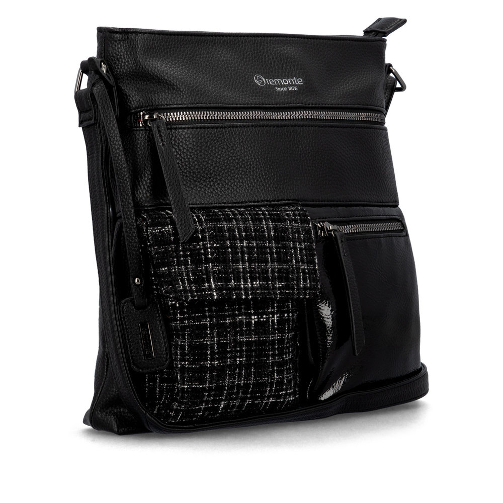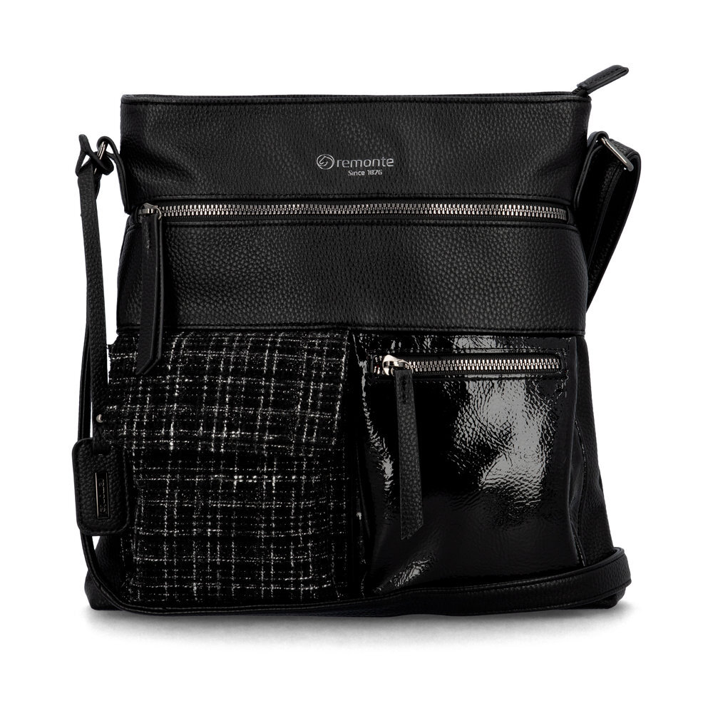 Táto dámska kabelka z kolekcie Remonte - Rieker je stelesnením štýlového vzhľadu a funkčnosti v jednom. Kombinácia Matt Black, lesklé akcenty a textilný materiál so vzorom vytvára originálny dizajn. Praktické predné vrecká - väčšie so zipsom, menšie so zipsom a druhé uzavreté s magnetickou sponou - umožňujú rýchly prístup k malým predmetom a je tu aj zadné vrecko na zips. Hlavným priestorom je zips a ponúka ďalšie menšie priehradky vo vnútri, ktoré pomáhajú udržiavať veci jasne usporiadané. Určite oceníte malú peňaženku ako praktické príslušenstvo - ideálne pre malé mince, kľúče alebo iné malé veci, ktoré potrebujete mať po ruke. Vďaka karabíne ju môžete jednoducho pripevniť k kabelke. Rozmery cca 29 cm x W 26 cm x H 5 cm, kabelka nie je rozdelená, má dĺžkový remienok. Kabelka má dĺžkovo nastaviteľný popruh, ktorý nemožno odopnúť. Maximálna dĺžka nastaviteľného popruhu je cca 125 cm.