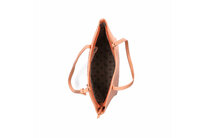 Nádherná shopper kabelka vo výnimočnom odtieni marhuľovej farby z kolekcie značky Rieker. Priestranný strih - formát A4 sa pohodlne zmestí, vyrobená z poddajnej hladkej syntetiky, nežný marhuľový odtieň, na prednej strane ozdobný prepaľovaný vzor (podšitý), kovanie v striebornej farbe, odopínateľný prívesok s logom značky, zhora uzatváranie na zips. Vnútorná výbava 1x zipsové vrecko na cennosti, 2x otvorené vrecko na mobil, kľúče a pod. Madlá na rameno (stredová vzdialenosť od hrany kabelky je cca 26 cm), rozmery: horná šírka 40 cm, výška 27 cm, dno má hĺbku 11 cm a je opatrené kovovými opierkami.
