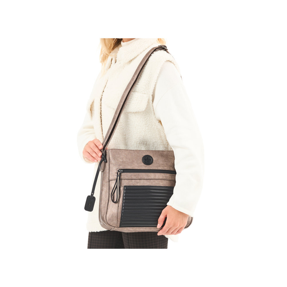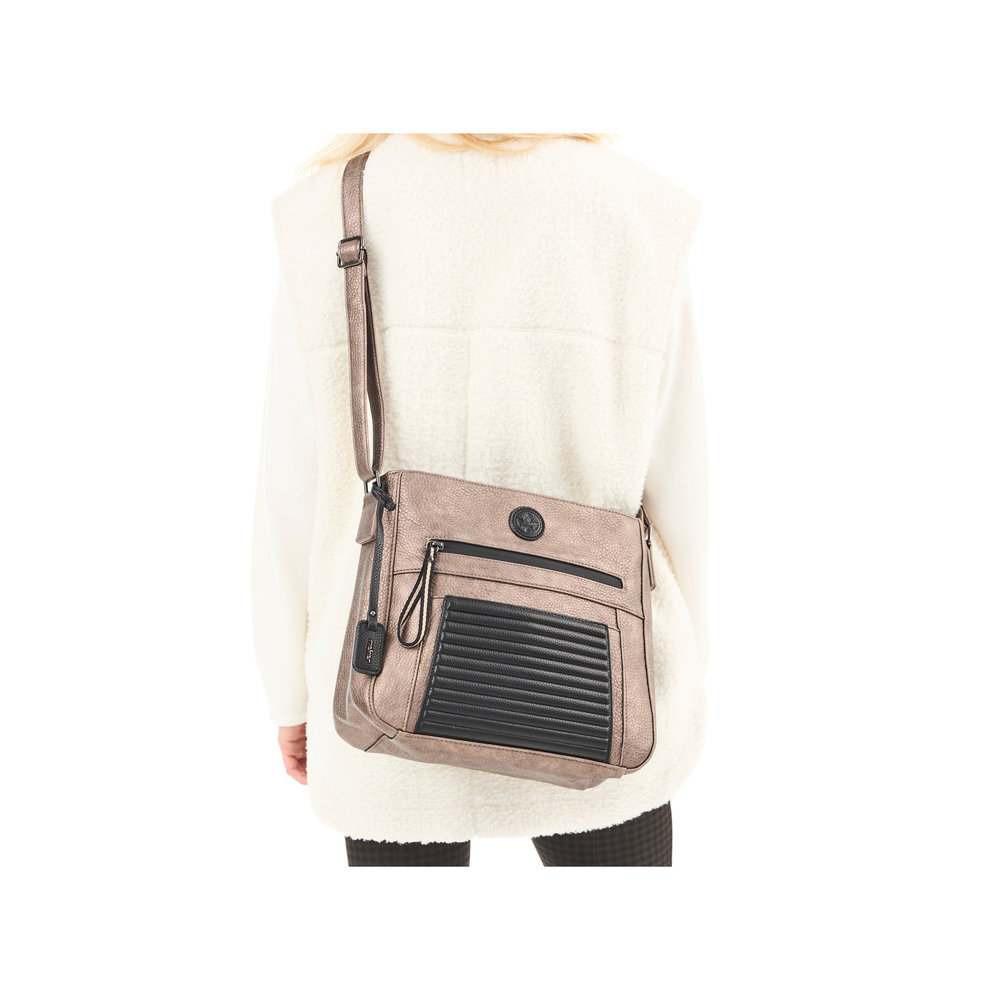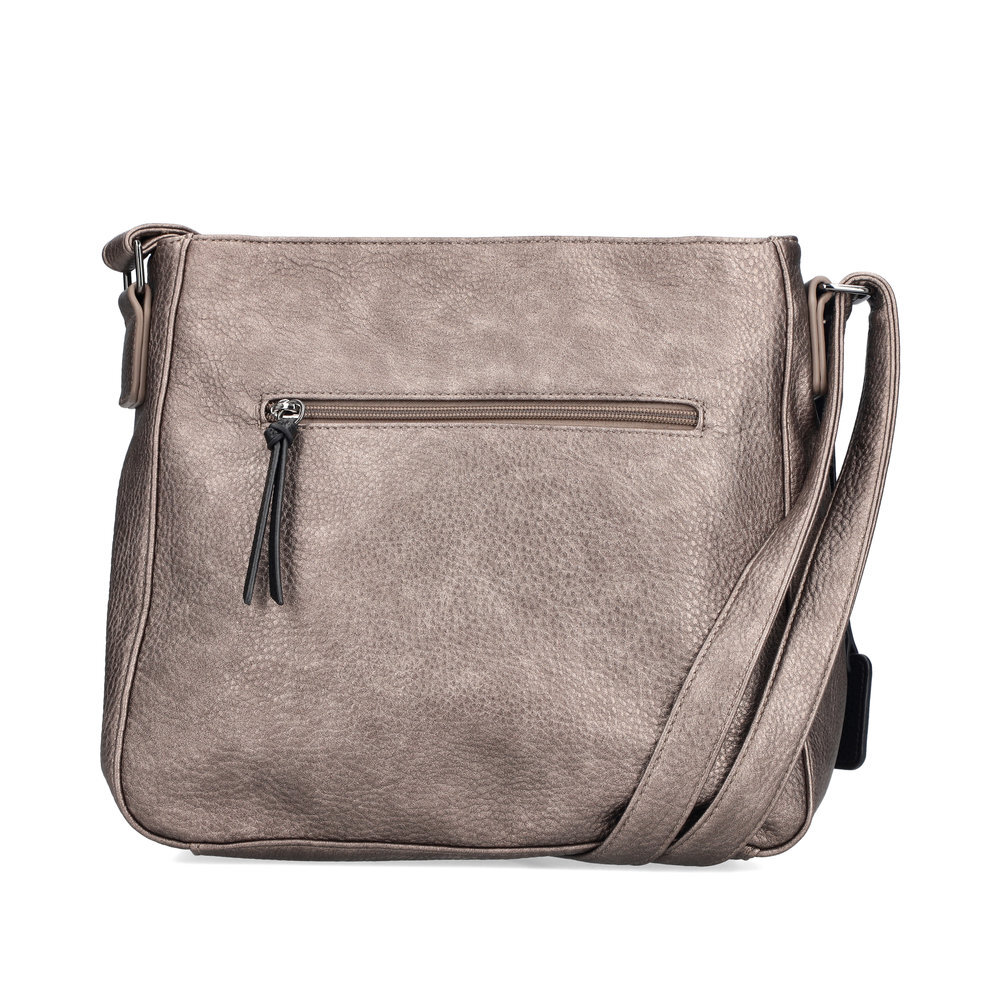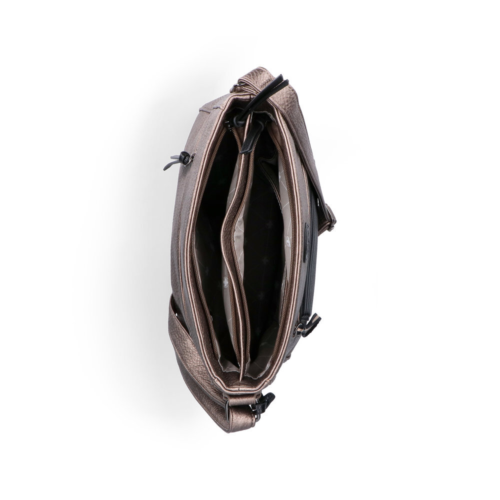 Dámska crossbody, kabelka z kolekcie značky Rieeker. Originálny dizajn, ktorý kombinuje jemne lesklý povrch so zaujímavým kontrastným prvkom – čiernym dielom s prešitím. Predná časť je prakticky vybavená dvoma vreckami, jedno je uzatvárateľné zipsom a druhé magnetickým klipom. Kabelka je rozdelená na dve samostatné časti, uzatvárané zipsom, a v každej z nich nájdete menšie vrecká pre lepšiu organizáciu. Ďalší úložný priestor poskytuje malé vrecko na zadnej časti kabelky, ideálne pre drobnosti. Nastaviteľný dlhý popruh, ktorý nie je možné odopnúť, umožňuje pohodlné nosenie cez plece alebo cez telo. Rozmery cca V 29 cm x Š 30 cm x H 10 cm, kabelka je delená, má dĺžkovo nastaviteľný popruh, ktorý nie je možné odopnúť. Maximálna dĺžka nastaviteľného popruhu je cca 125 cm.