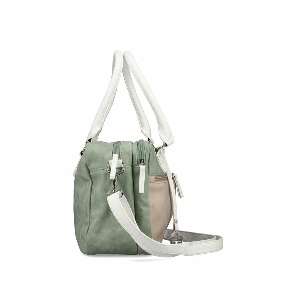 Priestranná a štýlová dámska shopper kabelka z kolekcie značky Rieker. Kabelka stredného strihu - formát A4 sa nezmestí, vyrobená je z poddajnej štruktúrovanej syntetiky a syntetiky s jemnou vzorkou, kovanie v striebornej farbe, na prednej strane dve zipsové vrecká, odopínateľný prívesok s logom značky, zhora uzatváranie na dve zipsové vrecká. Vnútorná výbava, vonkajšie vrecko je obojstranne polstrované - vhodné pre notebook či tablet, hlavné vrecko obsahuje 1x zipsové vrecko na cennosti, 2x otvorené vrecko na mobil, kľúče a pod. Madlá na rameno alebo do ruky (stredová vzdialenosť od hrany kabelky je cca 19 cm), odopínateľný ramenný popruh s dĺžkovou reguláciou 75-140 cm, rozmery cca šírka 34 cm, výška 24 cm, dno má hĺbku 12 cm.