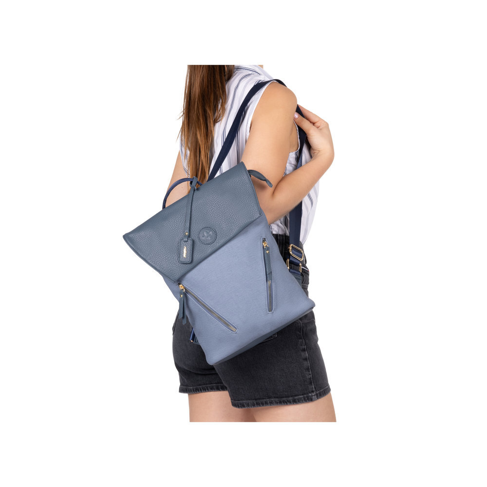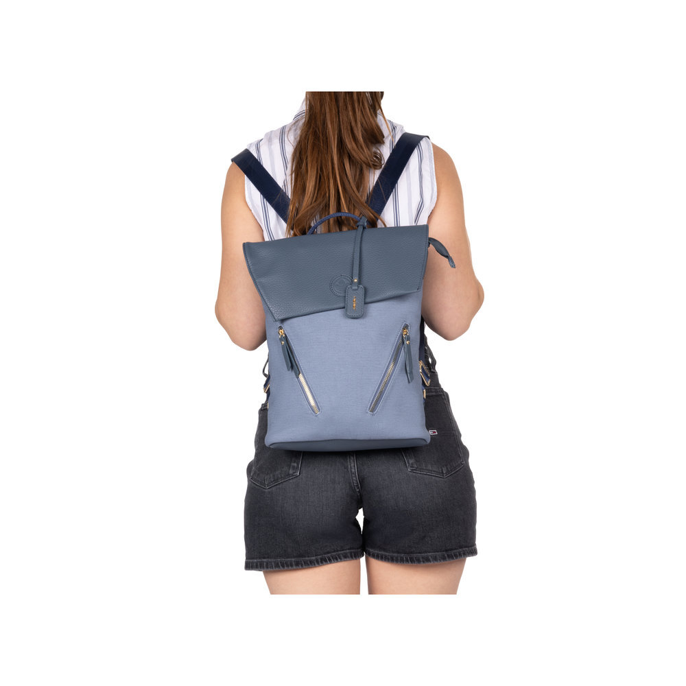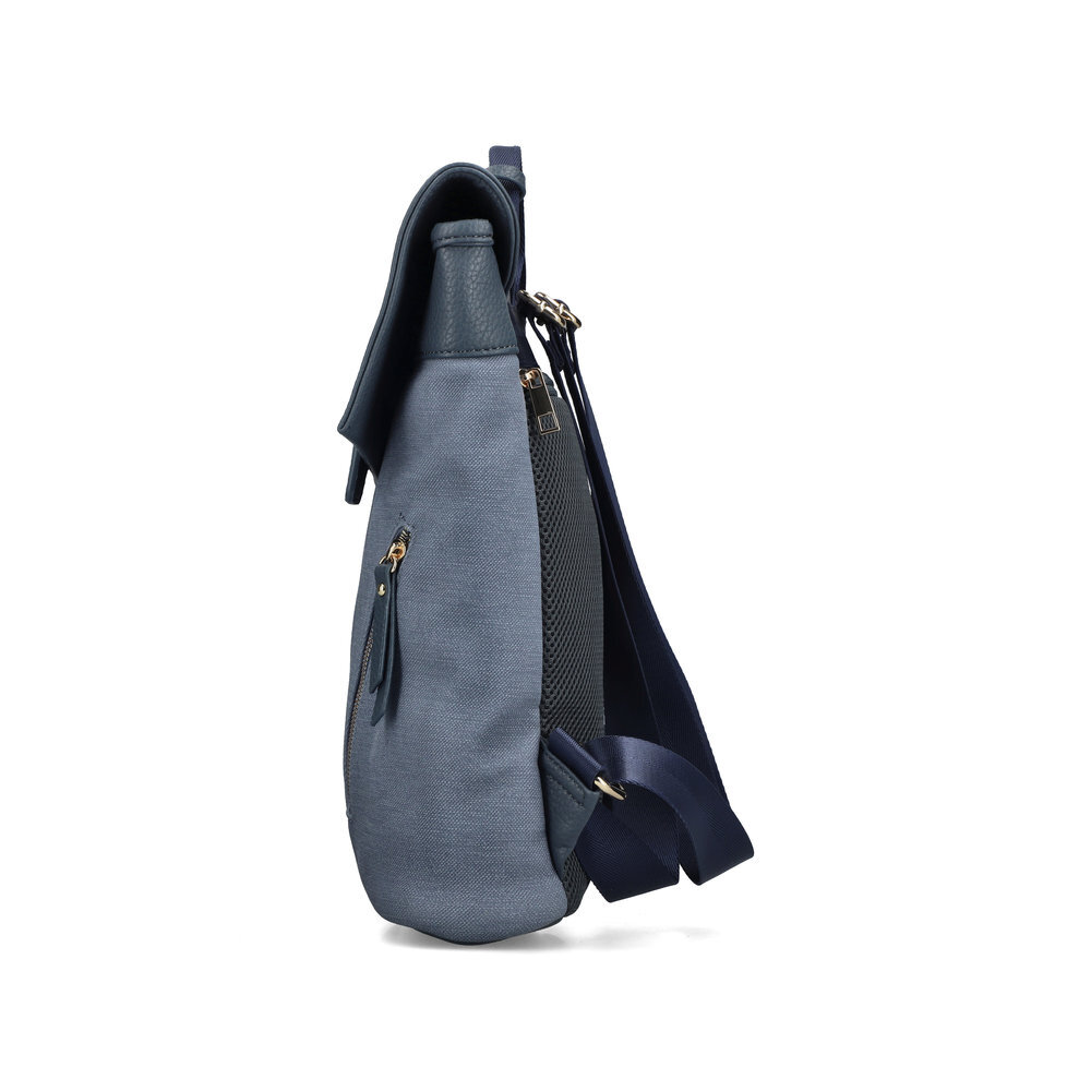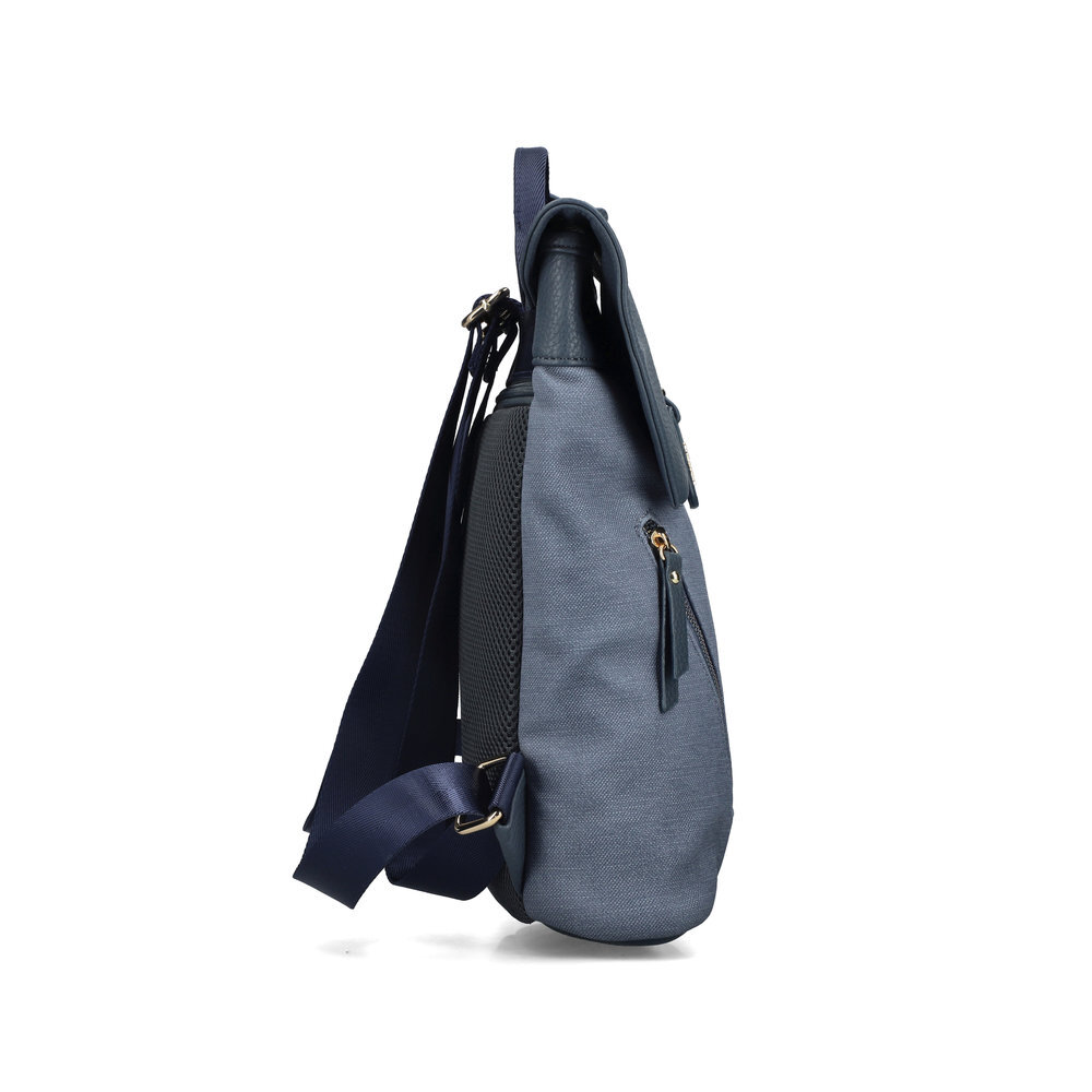 Moderný dámsky batoh z kolekcie Rieker. Pod vrchným odklápacím dielom sa nachádza zips. Veľká priehradka, do ktorej sa zmestia dokumenty formátu A4. Povrchová úprava z ekologickej kože zaručuje elegantný vzhľad, ktorý sa hodí k biznis štýlu a ľahko sa čistí. Batoh má nastaviteľné popruhy a nechýba ani praktický úchyt na nosenie v ruke. Vrchný materiál je kombinácia textilu a syntetiky. Vnútorný materiál je textil. Batoh má rozmery 32 cm x 25 cm x 9 cm. S prehľadom sa Vám do neho zmestia každodenné potreby.