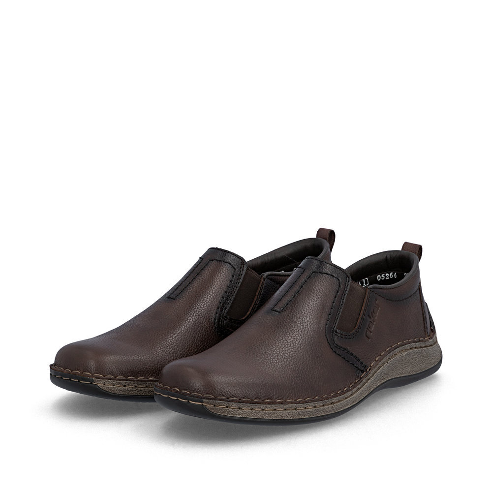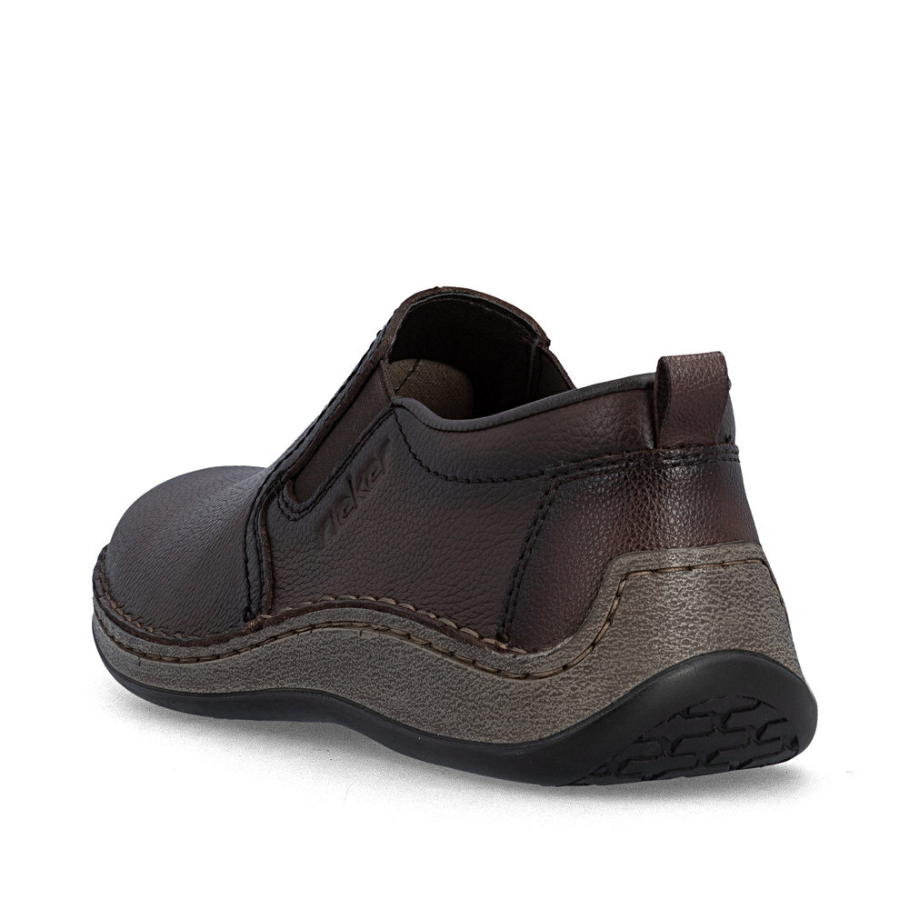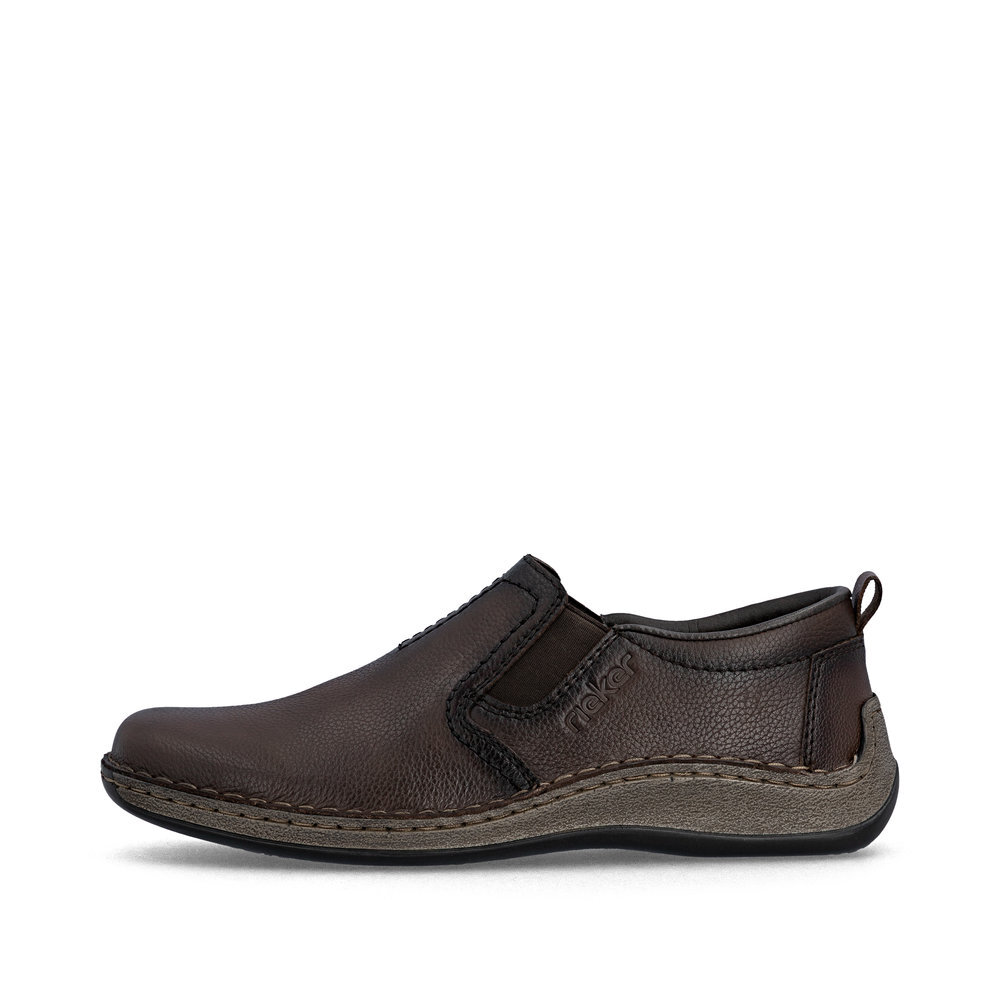 Pánske kožené mokasíny z kolekcie značky Rieker. Priestorný strih. Sú vybavené vsadenými gumičkami pre pohodlné vyzúvanie a obúvanie. Pohodlná, ľahká konštrukcia s mäkkou stielkou zaistí príjemnú chôdzu, rovnako ako aj ohybná podošva. Vďaka jej vlastnostiam je táto obuv vyhľadávaná všetkými, ktorí musia počas dňa dlho stáť a chodiť. Kožené topánky sú zaručenou klasikou, zaručia Vám vysokú kvalitu a ide o pár, ktorý vám vydrží niekoľko sezón. Pružná podošva dokonale dopĺňa športový dizajn, postará sa o Vaše pohodlie na každom kroku, tlmí nárazy a otrasy. Ak denne trávite na nohách viac času tak značka Rieker je skutočne tou pravou voľbou pre Vás. Ide doslova o vychádzkovú obuv ktorá vydrží v plnej kvalite naozaj veľmi dlhý čas. Po vyčerpávajúcom a náročnom dni sa budú Vaše nohy cítiť svieže a oddýchnuté a to najmä vďaka ľahkým materiálom.