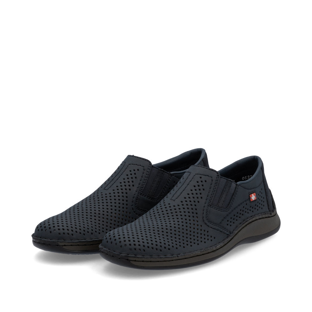 Pánske kožené mokasíny z kolekcie značky Rieker. Priestorný strih. Sú vybavené vsadenými gumičkami pre pohodlné vyzúvanie a obúvanie. Pohodlná, ľahká konštrukcia s mäkkou stielkou zaistí príjemnú chôdzu, rovnako ako aj ohybná podošva. Vďaka jej vlastnostiam je táto obuv vyhľadávaná všetkými, ktorí musia počas dňa dlho stáť a chodiť. Kožené topánky sú zaručenou klasikou, zaručia Vám vysokú kvalitu a ide o pár, ktorý vám vydrží niekoľko sezón. Pružná podošva dokonale dopĺňa športový dizajn, postará sa o Vaše pohodlie na každom kroku, tlmí nárazy a otrasy. Ak denne trávite na nohách viac času tak značka Rieker je skutočne tou pravou voľbou pre Vás. Ide doslova o vychádzkovú obuv ktorá vydrží v plnej kvalite naozaj veľmi dlhý čas. Po vyčerpávajúcom a náročnom dni sa budú Vaše nohy cítiť svieže a oddýchnuté a to najmä vďaka ľahkým materiálom.