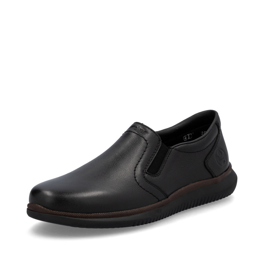 Pánske kožené mokasíny z kolekcie značky Rieker. Priestorný strih. Sú vybavené vsadenými gumičkami pre pohodlné vyzúvanie a obúvanie. Pohodlná, ľahká konštrukcia s mäkkou stielkou zaistí príjemnú chôdzu, rovnako ako aj ohybná podošva. Vďaka jej vlastnostiam je táto obuv vyhľadávaná všetkými, ktorí musia počas dňa dlho stáť a chodiť. Kožené topánky sú zaručenou klasikou, zaručia Vám vysokú kvalitu a ide o pár, ktorý vám vydrží niekoľko sezón. Pružná podošva dokonale dopĺňa športový dizajn, postará sa o Vaše pohodlie na každom kroku, tlmí nárazy a otrasy. Ak denne trávite na nohách viac času tak značka Rieker je skutočne tou pravou voľbou pre Vás. Ide doslova o vychádzkovú obuv ktorá vydrží v plnej kvalite naozaj veľmi dlhý čas. Po vyčerpávajúcom a náročnom dni sa budú Vaše nohy cítiť svieže a oddýchnuté a to najmä vďaka ľahkým materiálom.