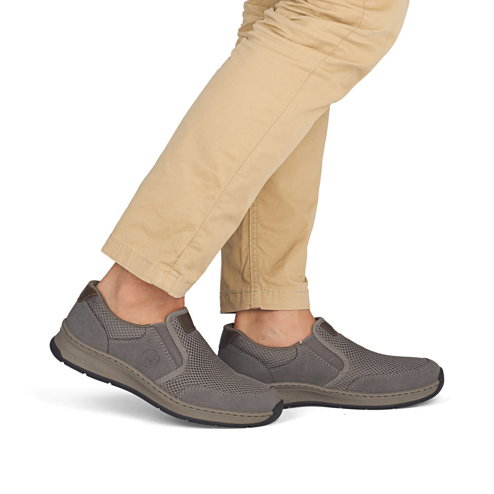 Pánske mokasíny z kolekcie značky Rieker. Priestorný strih. Sú vybavené vsadenými gumičkami pre pohodlné vyzúvanie a obúvanie. Komfortný model, ktorý počas letných dní zaiste využijete. Pohodlná, ľahká konštrukcia s mäkkou stielkou zaistí príjemnú chôdzu, rovnako ako aj ohybná podošva. Vďaka jej vlastnostiam je táto obuv vyhľadávaná všetkými, ktorí musia počas dňa dlho stáť a chodiť. Pružná podošva dokonale dopĺňa športový dizajn, postará sa o Vaše pohodlie na každom kroku, tlmí nárazy a otrasy. Ak denne trávite na nohách viac času tak značka Rieker je skutočne tou pravou voľbou pre Vás. Ide doslova o vychádzkovú obuv ktorá vydrží v plnej kvalite naozaj veľmi dlhý čas. Po vyčerpávajúcom a náročnom dni sa budú Vaše nohy cítiť svieže a oddýchnuté a to najmä vďaka ľahkým materiálom.