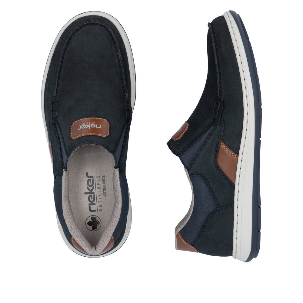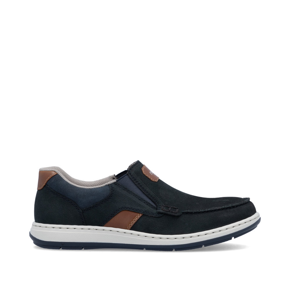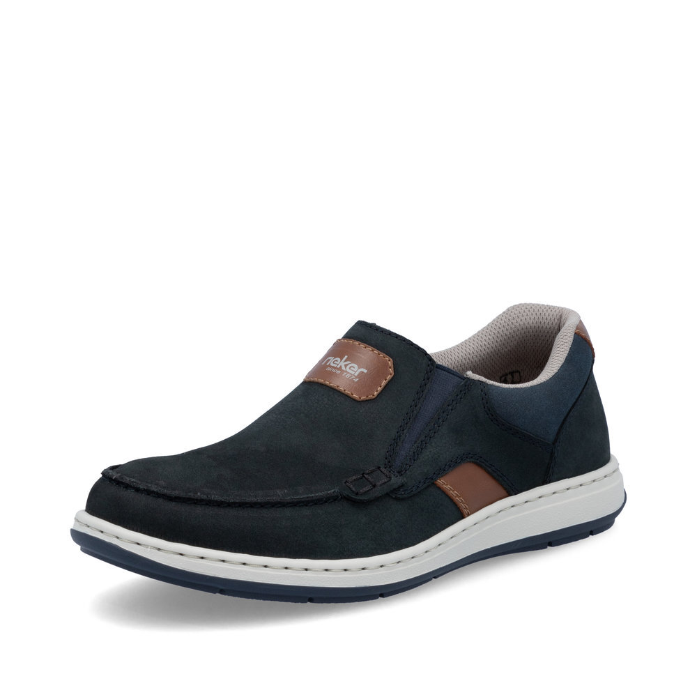 Pánske kožené mokasíny z kolekcie značky Rieker. Priestorný strih. Sú vybavené vsadenými gumičkami pre pohodlné vyzúvanie a obúvanie. Pohodlná, ľahká konštrukcia s mäkkou stielkou zaistí príjemnú chôdzu, rovnako ako aj ohybná podošva. Vďaka jej vlastnostiam je táto obuv vyhľadávaná všetkými, ktorí musia počas dňa dlho stáť a chodiť. Kožené topánky sú zaručenou klasikou, zaručia Vám vysokú kvalitu a ide o pár, ktorý vám vydrží niekoľko sezón. Pružná podošva dokonale dopĺňa športový dizajn, postará sa o Vaše pohodlie na každom kroku, tlmí nárazy a otrasy. Ak denne trávite na nohách viac času tak značka Rieker je skutočne tou pravou voľbou pre Vás. Ide doslova o vychádzkovú obuv ktorá vydrží v plnej kvalite naozaj veľmi dlhý čas. Po vyčerpávajúcom a náročnom dni sa budú Vaše nohy cítiť svieže a oddýchnuté a to najmä vďaka ľahkým materiálom.