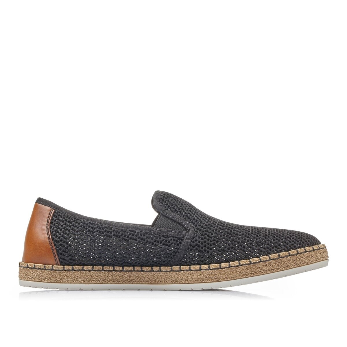 Flexibilné pánske mokasíny - športové a vychádzkové topánky značky Rieker. Ozdobené štepovaním v hornej časti zvršku dávajú topánkam svoj osobitý a módny vzhľad. Na vnútornej i vonkajšej strane priehlavku sú vybavené vsadenými gumičkami pre pohodlné vyzúvanie a obúvanie. Dizajnová podošva sa postará o Vaše pohodlie na každom kroku. Pre všetkých, ktorí sa chcú v topánkach cítiť pohodlne a štýlovo. Perforovanie - dierkovanie v hornej časti zvršku dávajú topánkam svoj osobitý, módny a vzdušný vzhľad. Tento model oceníte pri ceste do práce, ale aj pri bežných pochôdzkach. Pohodlná, ľahká konštrukcia s mäkkou koženou stielkou zaistí príjemnú chôdzu, rovnako ako aj ohybná podošva. Z kolekcie Antistress. Protistresový systém znamená pohodlie pri každom kroku vďaka ľahkej, flexibilnej podrážke.