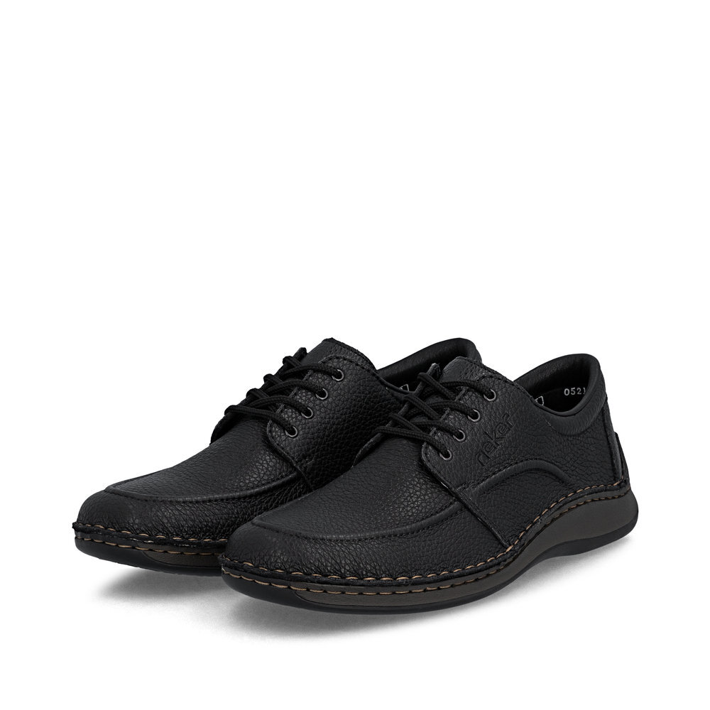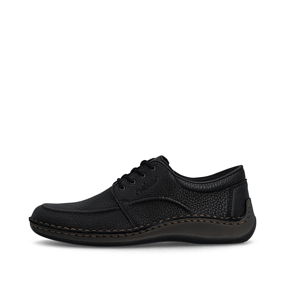 Obľúbený strih pánskych kožených poltopánok na šnurovanie z kolekcie značky Rieker. Kožené topánky sú zaručenou klasikou, zaručia Vám vysokú kvalitu a ide o pár, ktorý vám vydrží niekoľko sezón. Vďaka pevnému šnurovaniu tento model topánok pevne priľne k nohe po celej dĺžke. Viazanie zároveň esteticky dotvára zvršok obuvi v klasickom štýle. Zdobené švami a šitím podošvy. Topánky Vám zabezpečia maximálny komfort pri celodennom nosení. Ak denne trávite na nohách viac času tak značka Rieker je skutočne tou pravou voľbou pre Vás. Ide doslova o vychádzkovú obuv ktorá vydrží v plnej kvalite naozaj veľmi dlhý čas. Po vyčerpávajúcom a náročnom dni sa budú Vaše nohy cítiť svieže a oddýchnuté a to najmä vďaka ľahkým materiálom.