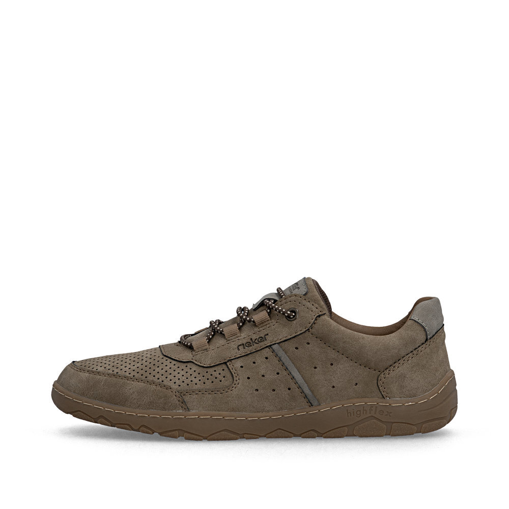 Obľúbený strih pánskych poltopánok na šnurovanie z kolekcie značky Rieker. Zdobené švami a šitím podošvy. Perforovanie, dierkovanie v hornej časti zvršku dávajú topánkam svoj osobitý a vzdušný vzhľad, ktorý zaručuje pohodlie a komfort aj počas letných horúcich dní. Topánky Vám zabezpečia maximálny komfort pri celodennom nosení. Ak denne trávite na nohách viac času tak značka Rieker je skutočne tou pravou voľbou pre Vás. Ide doslova o vychádzkovú obuv ktorá vydrží v plnej kvalite naozaj veľmi dlhý čas. Po vyčerpávajúcom a náročnom dni sa budú Vaše nohy cítiť svieže a oddýchnuté a to najmä vďaka ľahkým materiálom.