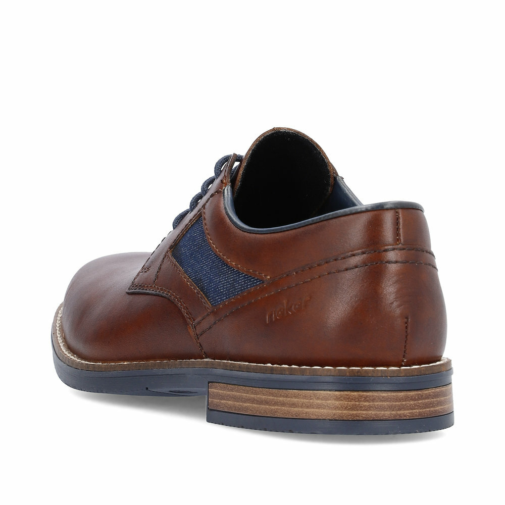 Obľúbený strih pánskych, kožených poltopánok na šnurovanie z kolekcie značky Rieker. Topánky budú ideálnou voľbou na formálne aj spoločenské príležitosti. Vďaka pevnému šnurovaniu tento model topánok pevne priľne k nohe po celej dĺžke. Viazanie zároveň esteticky dotvára zvršok obuvi v klasickom štýle. Zdobené švami a šitím podošvy. Kvalitný materiál v luxusnom a precíznom prevedení. Topánky Vám zabezpečia maximálny komfort pri celodennom nosení. Ak denne trávite na nohách viac času tak značka Rieker je skutočne tou pravou voľbou pre Vás. Ide doslova o vychádzkovú obuv ktorá vydrží v plnej kvalite naozaj veľmi dlhý čas. Po vyčerpávajúcom a náročnom dni sa budú Vaše nohy cítiť svieže a oddýchnuté a to najmä vďaka ľahkým materiálom.