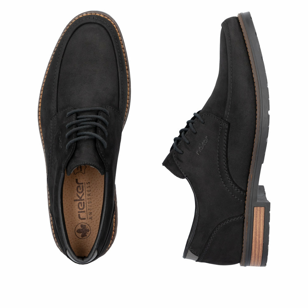 Obľúbený strih pánskych, kožených poltopánok na šnurovanie z kolekcie značky Rieker. Topánky budú ideálnou voľbou na formálne aj spoločenské príležitosti. Vďaka pevnému šnurovaniu tento model topánok pevne priľne k nohe po celej dĺžke. Viazanie zároveň esteticky dotvára zvršok obuvi v klasickom štýle. Zdobené švami a šitím podošvy. Kvalitný materiál v luxusnom a precíznom prevedení. Topánky Vám zabezpečia maximálny komfort pri celodennom nosení. Ak denne trávite na nohách viac času tak značka Rieker je skutočne tou pravou voľbou pre Vás. Ide doslova o vychádzkovú obuv ktorá vydrží v plnej kvalite naozaj veľmi dlhý čas. Po vyčerpávajúcom a náročnom dni sa budú Vaše nohy cítiť svieže a oddýchnuté a to najmä vďaka ľahkým materiálom.