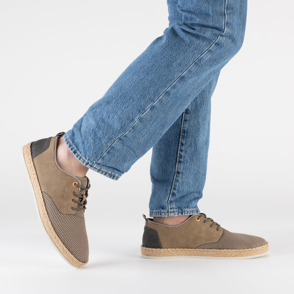 Obľúbený strih pánskych poltopánok na šnurovanie z kolekcie značky Rieker. Zdobené švami a šitím podošvy. Perforovanie, dierkovanie v hornej časti zvršku dávajú topánkam svoj osobitý a vzdušný vzhľad, ktorý zaručuje pohodlie a komfort aj počas letných horúcich dní. Topánky Vám zabezpečia maximálny komfort pri celodennom nosení. Ak denne trávite na nohách viac času tak značka Rieker je skutočne tou pravou voľbou pre Vás. Ide doslova o vychádzkovú obuv ktorá vydrží v plnej kvalite naozaj veľmi dlhý čas. Po vyčerpávajúcom a náročnom dni sa budú Vaše nohy cítiť svieže a oddýchnuté a to najmä vďaka ľahkým materiálom.
