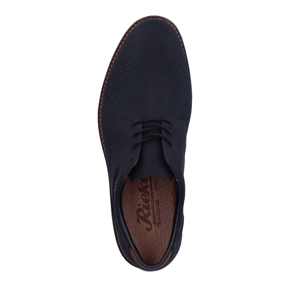Pánske poltopánky z kolekcie Rieker so šnurovaním pre jednoduché a správne nastavenie potrebnej šírky. Unikátna stielka z pamäťovej peny, ktorá zmäkčuje došľap, ale taktiež sa maximálne prispôsobí tvaru Vášho chodidla. Pohodlný strih. Tento model oceníte pri ceste do práce, ale aj pri bežných pochôdzkach. Pre všetkých, ktorí sa chcú v topánkach cítiť pohodlne a štýlovo. Pružná podošva dokonale dopĺňa dizajn, postará sa o Vaše pohodlie na každom kroku, tlmí nárazy a otrasy. Vďaka unikátnym vlastnostiam podošvy zažijete jedinečný pocit ľahkosti pri chôdzi. Ak denne trávite na nohách viac času tak značka Rieker je skutočne tou pravou voľbou pre Vás. Ide doslova o vychádzkovú obuv ktorá vydrží v plnej kvalite naozaj veľmi dlhý čas. Po vyčerpávajúcom a náročnom dni sa budú Vaše nohy cítiť svieže a oddýchnuté a to najmä vďaka ľahkým materiálom a konštrukcii.