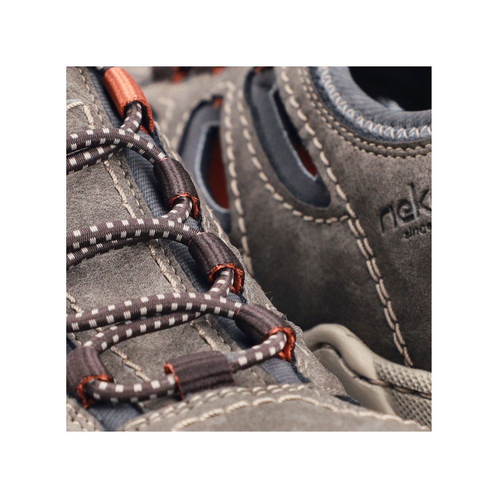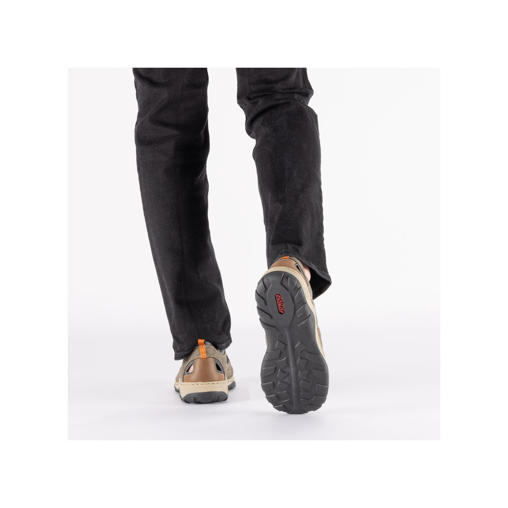 Pánske športové sandále z kolekcie značky Rieker. Dizajnová podošva sa postará o Vaše pohodlie na každom kroku. Tento model oceníte pri ceste do práce, ale aj pri bežných pochôdzkach. Pružná podošva dokonale dopĺňa športový dizajn, postará sa o Vaše pohodlie na každom kroku, tlmí nárazy a otrasy. Vďaka jej vlastnostiam je táto obuv vyhľadávaná všetkými, ktorí musia počas dňa dlho stáť a chodiť. Ak denne trávite na nohách viac času tak značka Rieker je skutočne tou pravou voľbou pre Vás. Ide doslova o vychádzkovú obuv ktorá vydrží v plnej kvalite naozaj veľmi dlhý čas. Po vyčerpávajúcom a náročnom dni sa budú Vaše nohy cítiť svieže a oddýchnuté a to najmä vďaka ľahkým materiálom.