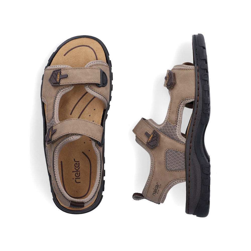 Pánske športové sandále z kolekcie značky Rieker. S individuálne nastaviteľnými uzávermi na suchý zips poskytujú presné prispôsobenie a sandále sú tak pevné a stabilné na nohe. Dizajnová podošva sa postará o Vaše pohodlie na každom kroku. Tento model oceníte pri ceste do práce, ale aj pri bežných pochôdzkach. Pružná a robustná podošva dokonale dopĺňa športový dizajn, postará sa o Vaše pohodlie na každom kroku, tlmí nárazy a otrasy. Vďaka jej vlastnostiam je táto obuv vyhľadávaná všetkými, ktorí musia počas dňa dlho stáť a chodiť. Ak denne trávite na nohách viac času tak značka Rieker je skutočne tou pravou voľbou pre Vás. Ide doslova o vychádzkovú obuv ktorá vydrží v plnej kvalite naozaj veľmi dlhý čas. Po vyčerpávajúcom a náročnom dni sa budú Vaše nohy cítiť svieže a oddýchnuté a to najmä vďaka ľahkým materiálom.