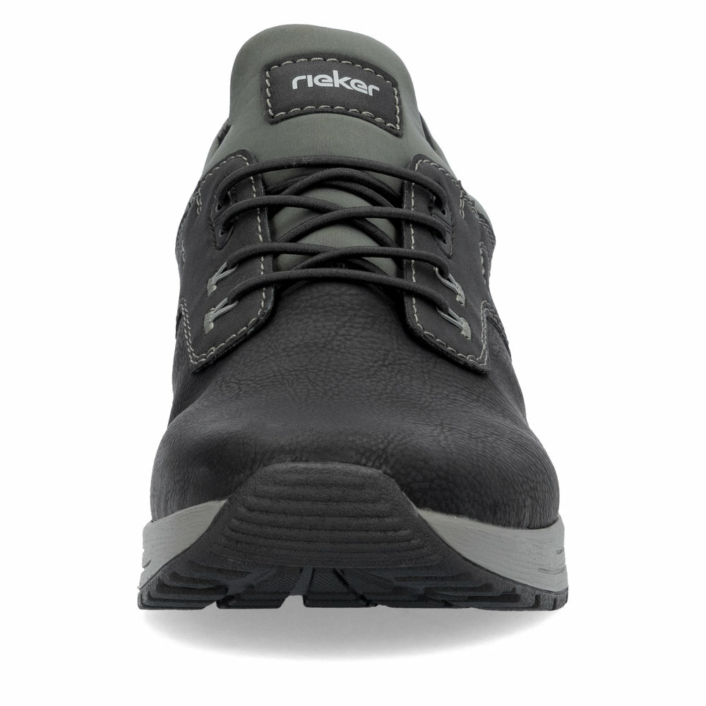 Pánske športovo - vychádzkové topánky, tenisky z kolekcie značky Rieker. Originálne, mimoriadne funkčné. Vďaka pevnému šnurovaniu tento model topánok pevne priľne k nohe po celej dĺžke. Viazanie zároveň esteticky dotvára zvršok obuvi v klasickom štýle. Pre všetkých, ktorí sa chcú v topánkach cítiť pohodlne a štýlovo. Pružná podošva dokonale dopĺňa športový dizajn, postará sa o Vaše pohodlie na každom kroku, tlmí nárazy a otrasy. Vďaka unikátnym vlastnostiam podošvy zažijete jedinečný pocit ľahkosti pri chôdzi. Ak denne trávite na nohách viac času tak značka Rieker je skutočne tou pravou voľbou pre Vás. Ide doslova o vychádzkovú obuv ktorá vydrží v plnej kvalite naozaj veľmi dlhý čas.