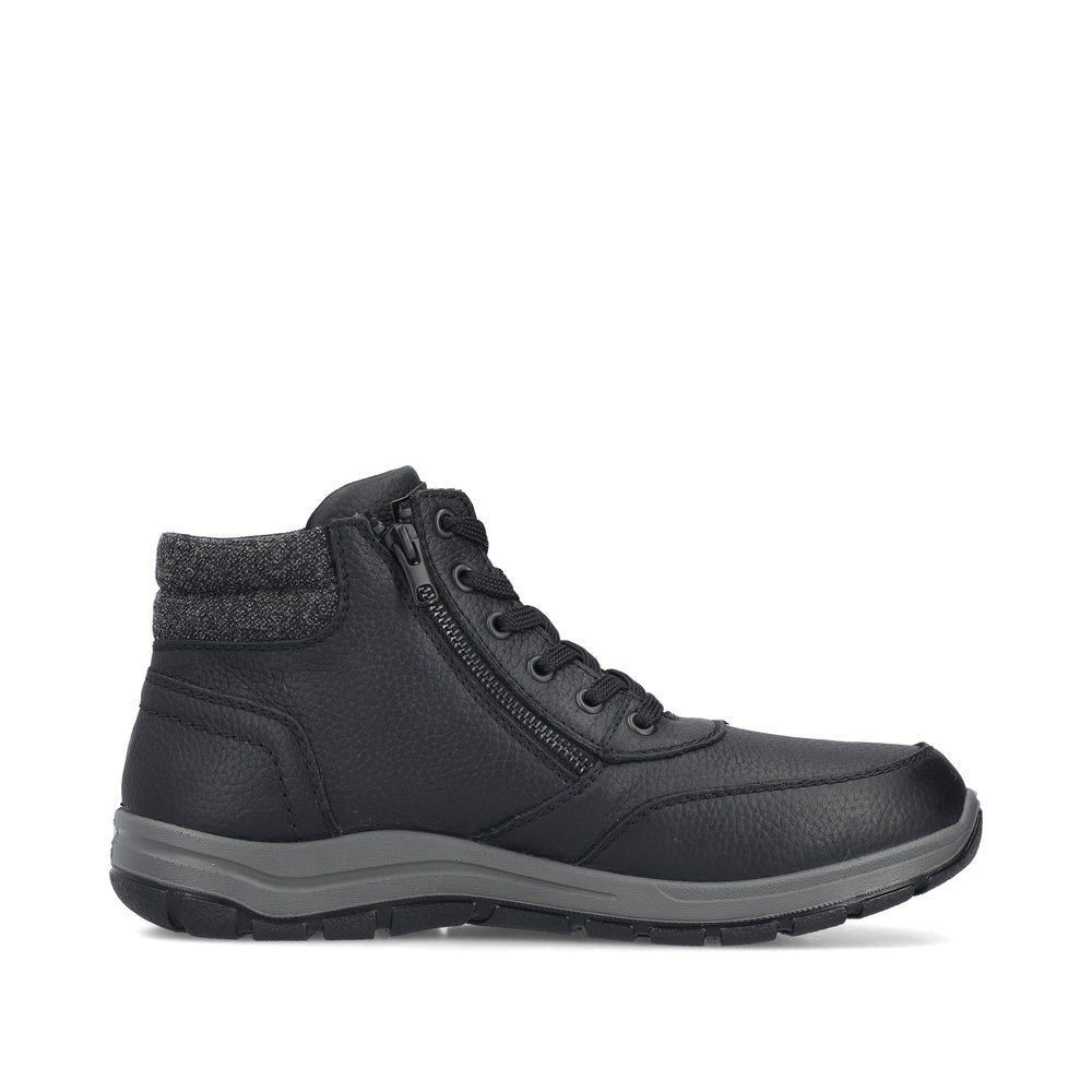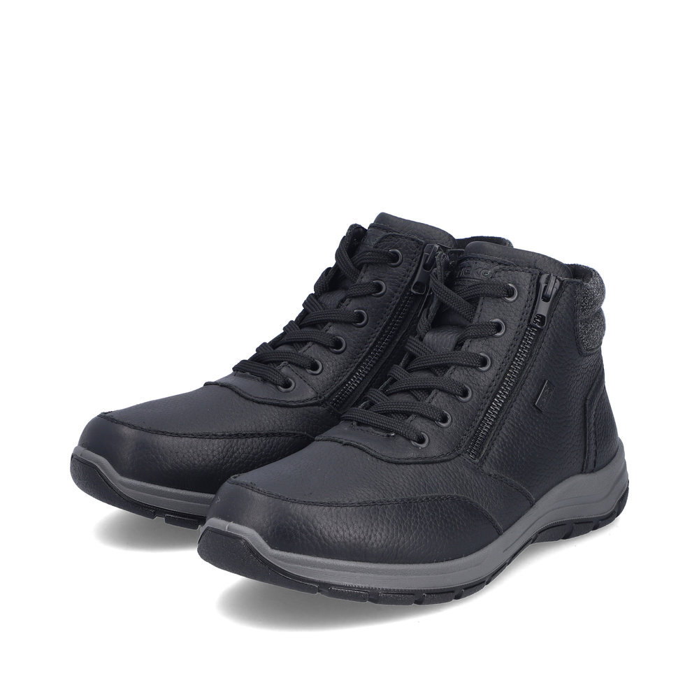 Pánske kožené zateplené topánky z kolekcie značky Rieker. Určite si ich zamilujete vďaka ich pohodlnosti a mäkkosti. Priestorný tvar špičky, mäkký a hrejivý materiál vás zahalí do pohodlia v mrazivých dňoch. Pre ľahké obutie je zapracovaný funkčný zips a šnúrky na šnurovanie. Vďaka pevnému šnurovaniu tento model topánok pevne priľne k nohe po celej dĺžke. Viazanie zároveň esteticky dotvára zvršok obuvi v klasickom štýle. Sú skvelým doplnením každého elegantného ale aj ležérneho outfitu. Kožené topánky sú zaručenou klasikou, zaručia Vám vysokú kvalitu a ide o pár, ktorý vám vydrží niekoľko sezón. Vďaka unikátnym vlastnostiam podošvy zažijete jedinečný pocit ľahkosti pri chôdzi. Ak denne trávite na nohách viac času tak značka Rieker je skutočne tou pravou voľbou pre Vás. Ide doslova o vychádzkovú obuv ktorá vydrží v plnej kvalite naozaj veľmi dlhý čas. TEX - funkčná vrstva, vďaka ktorej je topánka nepremokavá a napriek tomu priedušná.