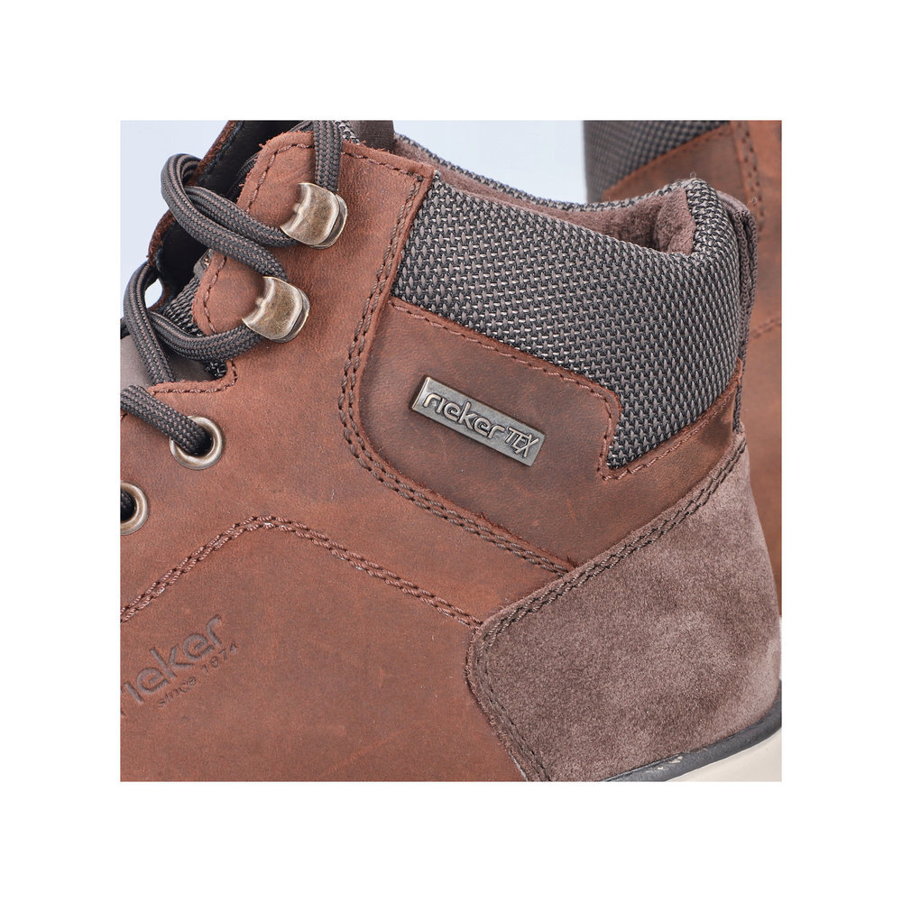 Pánske kožené zateplené topánky z kolekcie značky Rieker. Určite si ich zamilujete vďaka ich pohodlnosti a mäkkosti. Priestorný tvar špičky, mäkký a hrejivý materiál vás zahalí do pohodlia v mrazivých dňoch. Vďaka pevnému šnurovaniu tento model topánok pevne priľne k nohe po celej dĺžke. Viazanie zároveň esteticky dotvára zvršok obuvi v klasickom štýle. Kožené topánky sú zaručenou klasikou, zaručia Vám vysokú kvalitu a ide o pár, ktorý vám vydrží niekoľko sezón. Vďaka unikátnym vlastnostiam podošvy zažijete jedinečný pocit ľahkosti pri chôdzi. Ak denne trávite na nohách viac času tak značka Rieker je skutočne tou pravou voľbou pre Vás. Ide doslova o vychádzkovú obuv ktorá vydrží v plnej kvalite naozaj veľmi dlhý čas. TEX - funkčná vrstva, vďaka ktorej je topánka nepremokavá a napriek tomu priedušná.