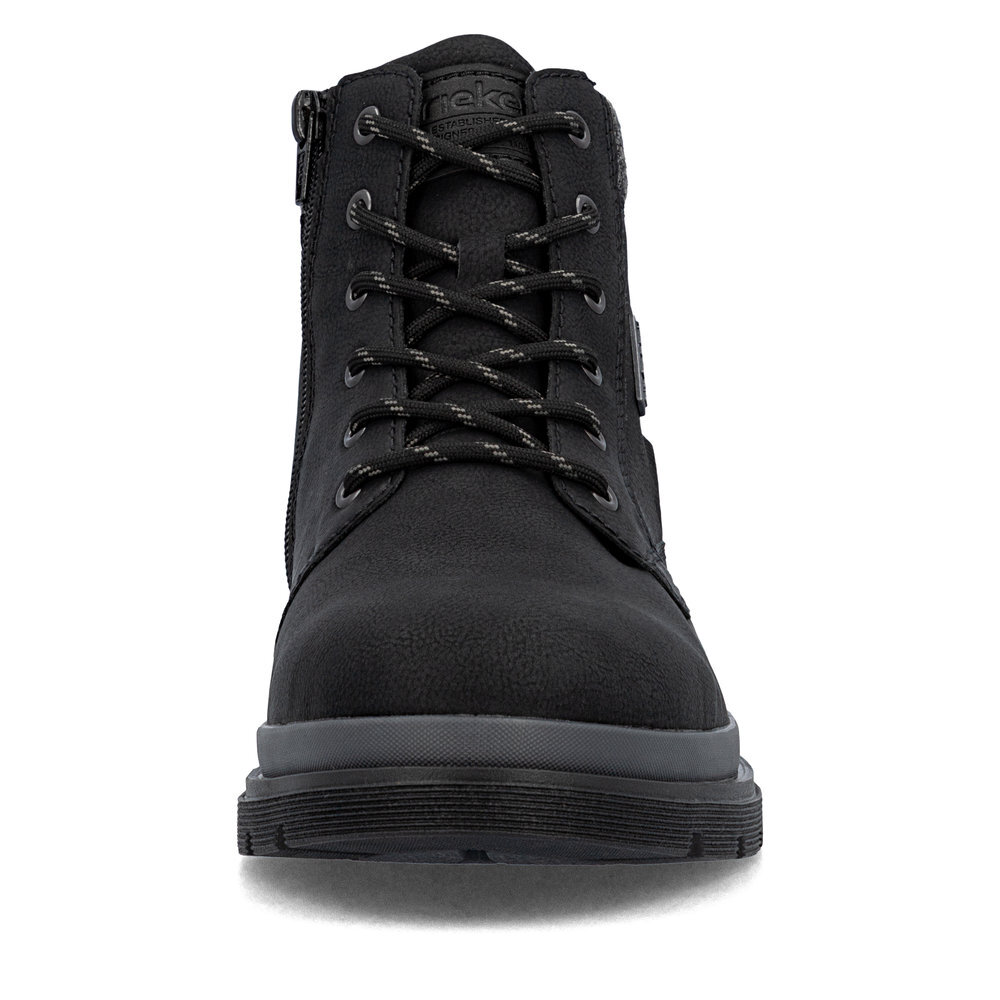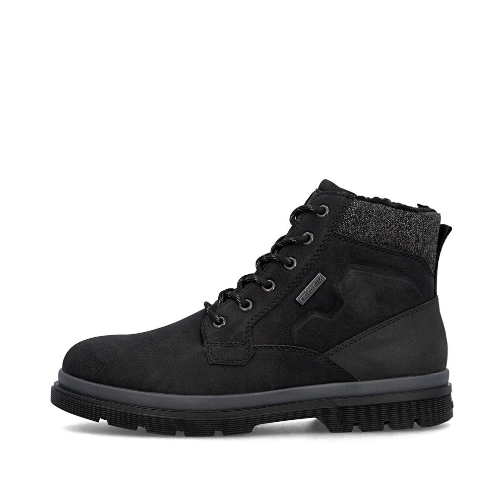 Pánske zateplené topánky z kolekcie značky Rieker. Priestorný tvar špičky, mäkký a hrejivý materiál vás zahalí do pohodlia v mrazivých dňoch. Určite si ich zamilujete vďaka ich pohodlnosti a mäkkosti. Pre ľahké obutie je zapracovaný funkčný zips a šnúrky na šnurovanie. Vďaka pevnému šnurovaniu tento model topánok pevne priľne k nohe po celej dĺžke. Viazanie zároveň esteticky dotvára zvršok obuvi v klasickom štýle. Vďaka unikátnym vlastnostiam podošvy zažijete jedinečný pocit ľahkosti pri chôdzi. Ak denne trávite na nohách viac času tak značka Rieker je skutočne tou pravou voľbou pre Vás. Ide doslova o vychádzkovú obuv ktorá vydrží v plnej kvalite naozaj veľmi dlhý čas. TEX - funkčná vrstva, vďaka ktorej je topánka nepremokavá a napriek tomu priedušná.