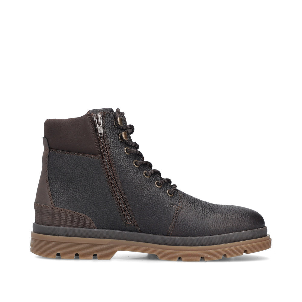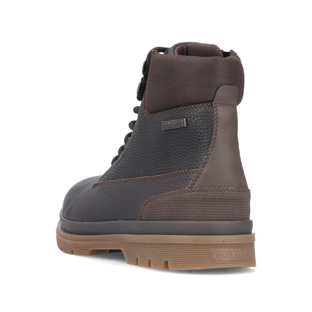 Pánske kožené zateplené topánky z kolekcie značky Rieker. Určite si ich zamilujete vďaka ich pohodlnosti a mäkkosti. Priestorný tvar špičky, mäkký a hrejivý materiál vás zahalí do pohodlia v mrazivých dňoch. Pre ľahké obutie je zapracovaný funkčný zips a šnúrky na šnurovanie. Vďaka pevnému šnurovaniu tento model topánok pevne priľne k nohe po celej dĺžke. Viazanie zároveň esteticky dotvára zvršok obuvi v klasickom štýle. Sú skvelým doplnením každého elegantného ale aj ležérneho outfitu. Kožené topánky sú zaručenou klasikou, zaručia Vám vysokú kvalitu a ide o pár, ktorý vám vydrží niekoľko sezón. Vďaka unikátnym vlastnostiam podošvy zažijete jedinečný pocit ľahkosti pri chôdzi. Ak denne trávite na nohách viac času tak značka Rieker je skutočne tou pravou voľbou pre Vás. Ide doslova o vychádzkovú obuv ktorá vydrží v plnej kvalite naozaj veľmi dlhý čas. TEX - funkčná vrstva, vďaka ktorej je topánka nepremokavá a napriek tomu priedušná.