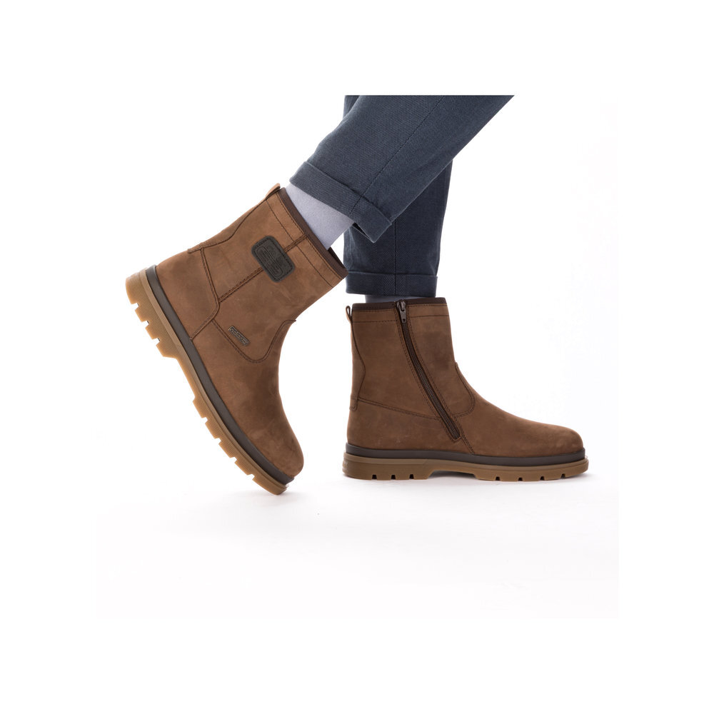 Pánske zateplené kožené čižmy z kolekcie značky Rieker. Obľúbený a priestorný strih, mäkký a hrejivý materiál vás zahalí do pohodlia v mrazivých dňoch. Pre všetkých, ktorí sa chcú v topánkach cítiť pohodlne a štýlovo. Určite si ich zamilujete vďaka ich pohodlnosti a mäkkosti. Kožené topánky sú zaručenou klasikou, zaručia Vám vysokú kvalitu a ide o pár, ktorý vám vydrží niekoľko sezón. Pre ľahké obutie je zapracovaný funkčný zips. Pružná a robustná podošva dokonale dopĺňa športový dizajn, postará sa o Vaše pohodlie na každom kroku, tlmí nárazy a otrasy. Vďaka unikátnym vlastnostiam podošvy zažijete jedinečný pocit ľahkosti pri chôdzi. Ak denne trávite na nohách viac času tak značka Rieker je skutočne tou pravou voľbou pre Vás. Ide doslova o vychádzkovú obuv ktorá vydrží v plnej kvalite naozaj veľmi dlhý čas. TEX - funkčná vrstva, vďaka ktorej je topánka nepremokavá a napriek tomu priedušná.