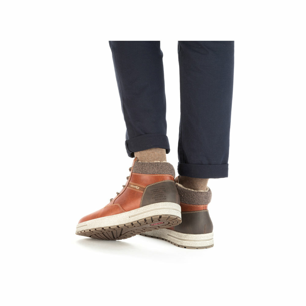 Pánske kožené topánky z kolekcie Rieker. Topánky sú zateplené a tak Vás príjemne zahrejú. Priestorný strih, mäkký a hrejivý materiál vás zahalí do pohodlia v mrazivých dňoch. Pre ľahké obutie je zapracovaný funkčný zips a šnúrky na šnurovanie. Vďaka pevnému šnurovaniu tento model topánok pevne priľne k nohe po celej dĺžke. Viazanie zároveň esteticky dotvára zvršok obuvi v klasickom štýle. Podrážka vyrobená z kvalitného materiálu perfektne izoluje chodidlo od studeného povrchu, na ktorom sa pohybujete. Kožené topánky sú zaručenou klasikou, zaručia Vám vysokú kvalitu a ide o pár, ktorý vám vydrží niekoľko sezón. Po vyčerpávajúcom a náročnom dni sa budú Vaše nohy cítiť svieže a oddýchnuté a to najmä vďaka ľahkým materiálom. Ak denne trávite na nohách viac času tak značka Rieker je skutočne tou pravou voľbou pre Vás. Ide doslova o vychádzkovú obuv ktorá vydrží v plnej kvalite naozaj veľmi dlhý čas. TEX - funkčná vrstva, vďaka ktorej je topánka nepremokavá a napriek tomu priedušná.